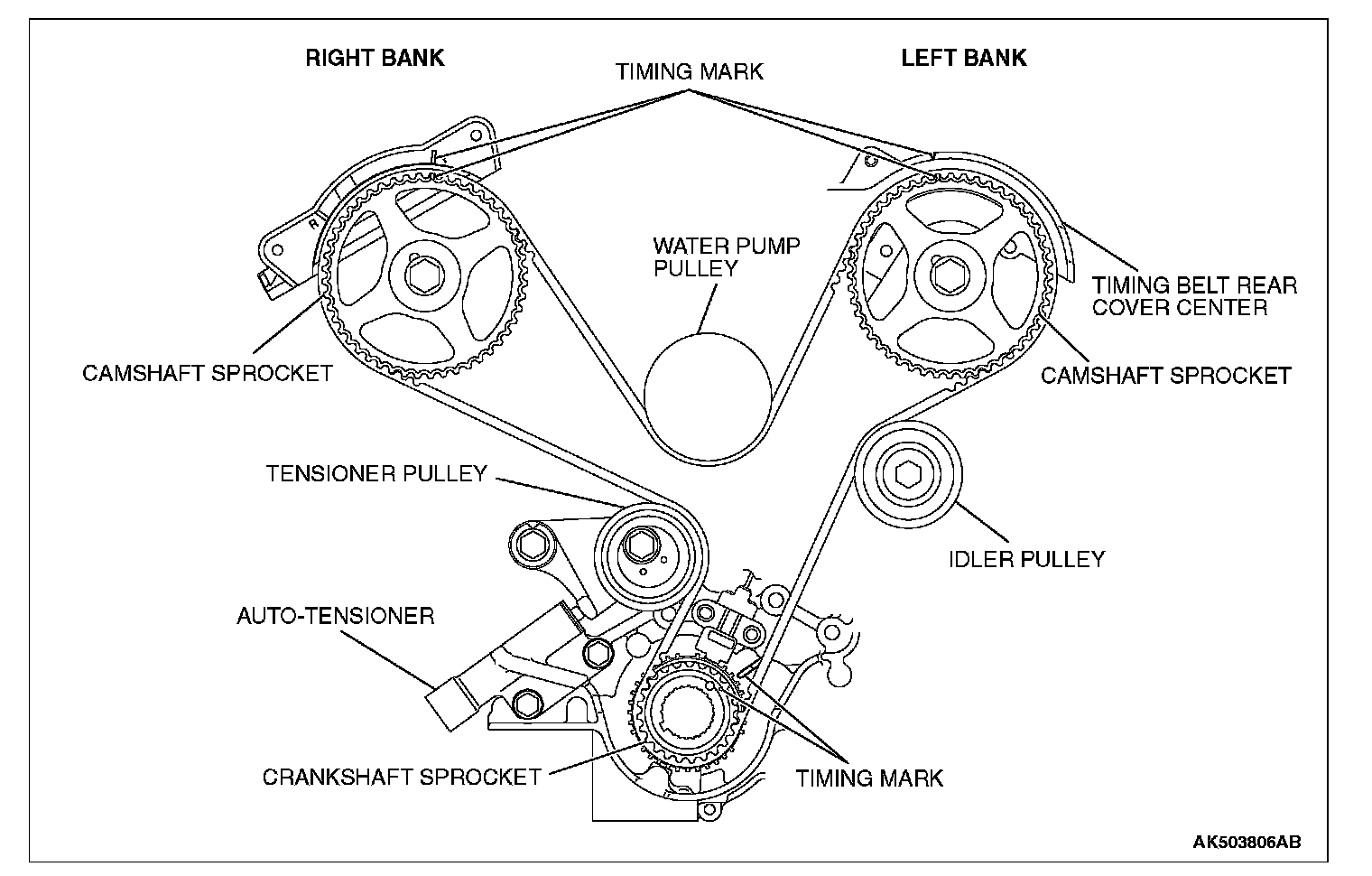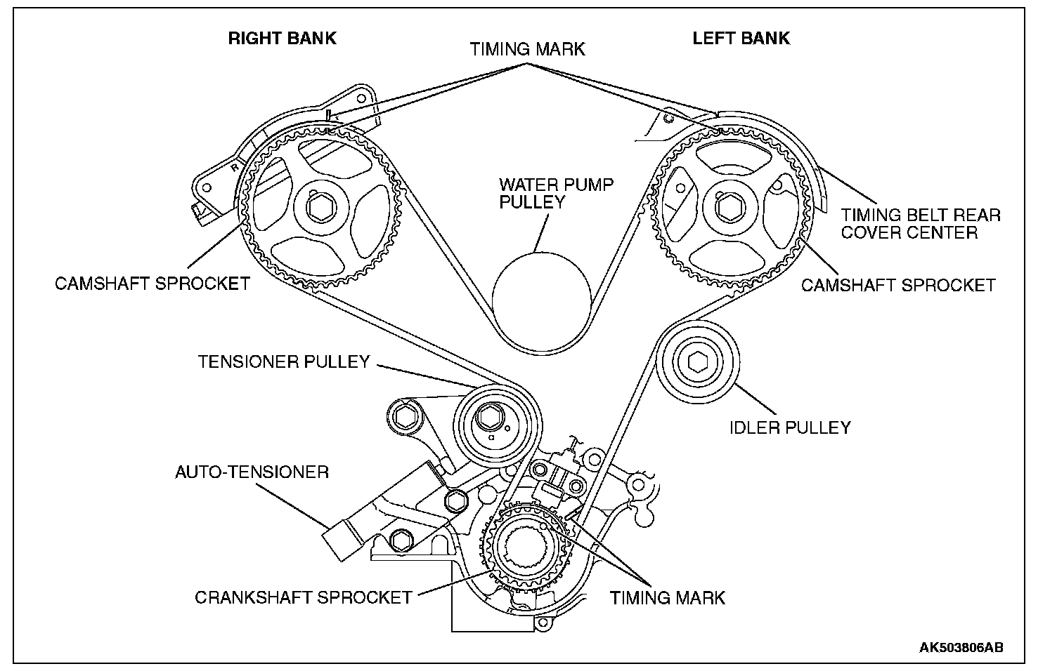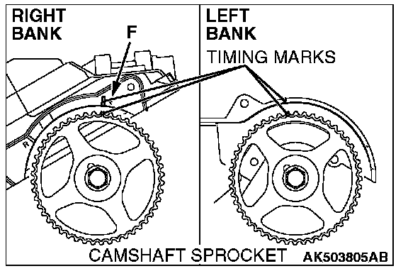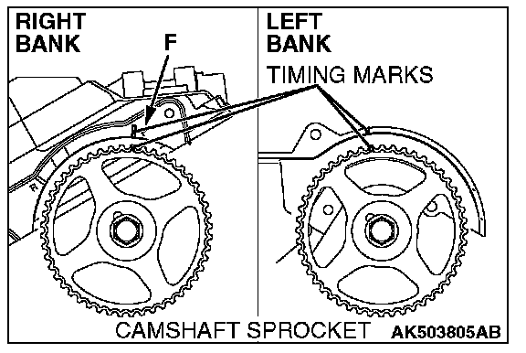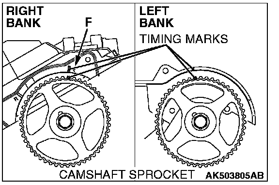 NOTE: Align the timing mark, on the right bank, with F