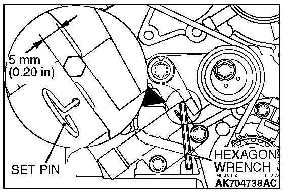 14. Pull out set pin having diameter 2 mm (0.08 inch) inserted into the auto tensioner.