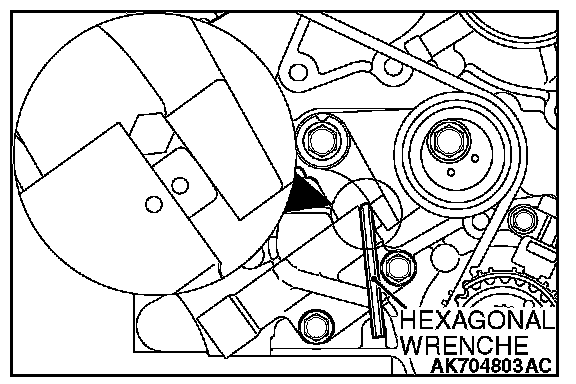 CAUTION: If the hexagonal wrench is removed first, the timing belt would possibly become loose and come off the tooth.