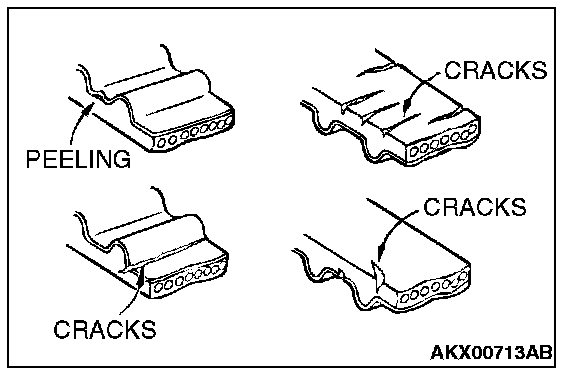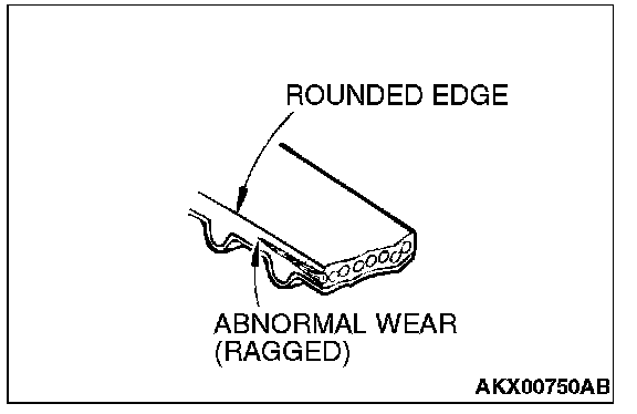 6. Abnormal wear of belt sides. Normal wear is indicated if the sides are sharp as if cut by a knife. Abnormal wear is indicated if the sides are ragged.