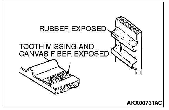 Replace the belt if any of the following conditions exist.