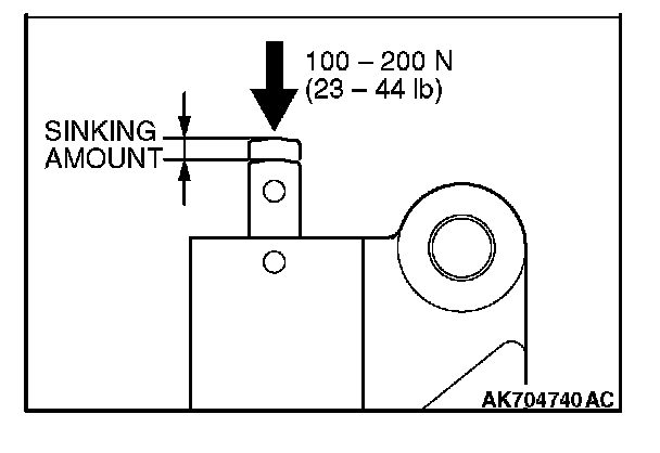 4. Measure the amount of the retraction when the rod is pressed with the force of 100 - 200 N (23 - 44 lb). If it deviates from the standard value, replace the auto tensioner.
