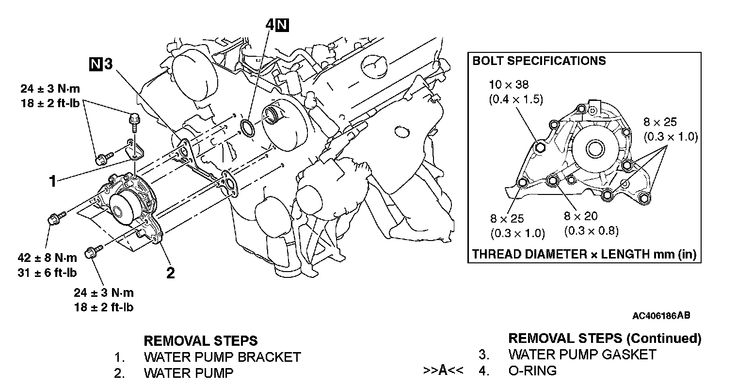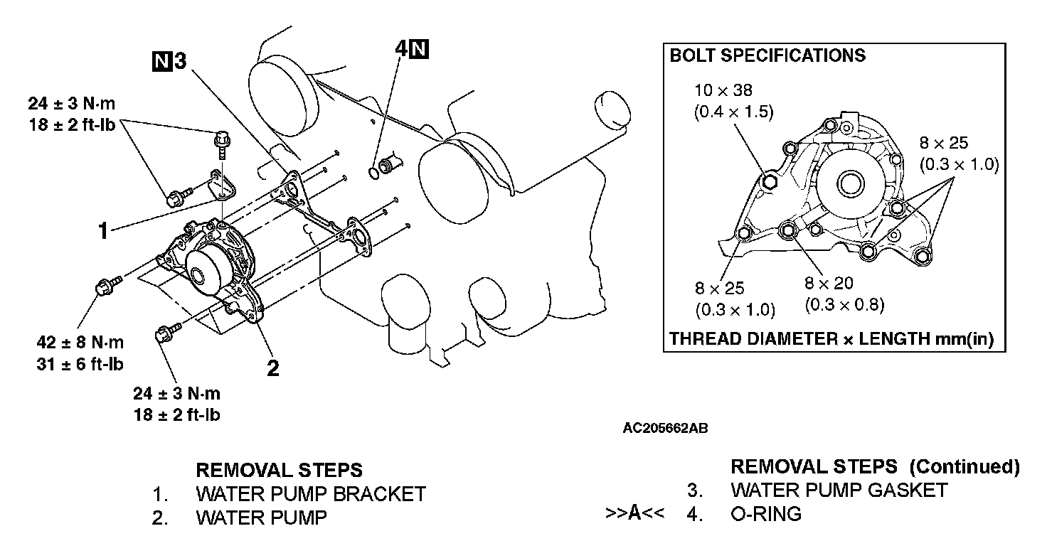 WATER PUMPREMOVAL AND INSTALLATION [3.8L ENGINE (EXCEPT MIVEC)]
