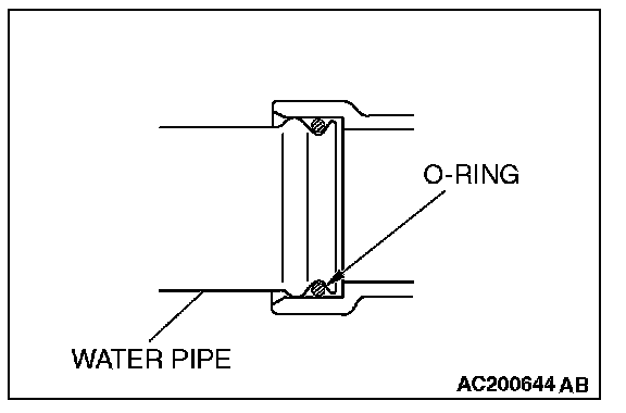 Fit the O-ring into the groove of the water pipe ends, and apply water or coolant to the circumference of the O-ring and the pipe bores to insert the pipe assembly.