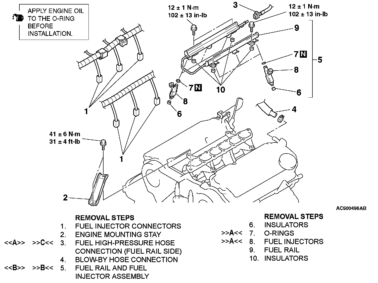 >>A<< FUEL INJECTORS/O-RINGS INSTALLATION