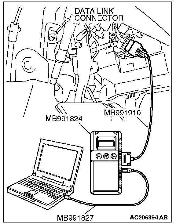 To prevent damage to scan tool MB991958, always turn the ignition switch to the "LOCK" (OFF) position before connecting or disconnecting scan tool MB991958.