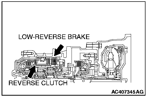 If the vehicle does not move backward when the selector lever is shifted from "N" to "R" range while the engine is idling, the cause is probably abnormal pressure or a malfunction of the reverse clutch, low-reverse brake, or valve body.