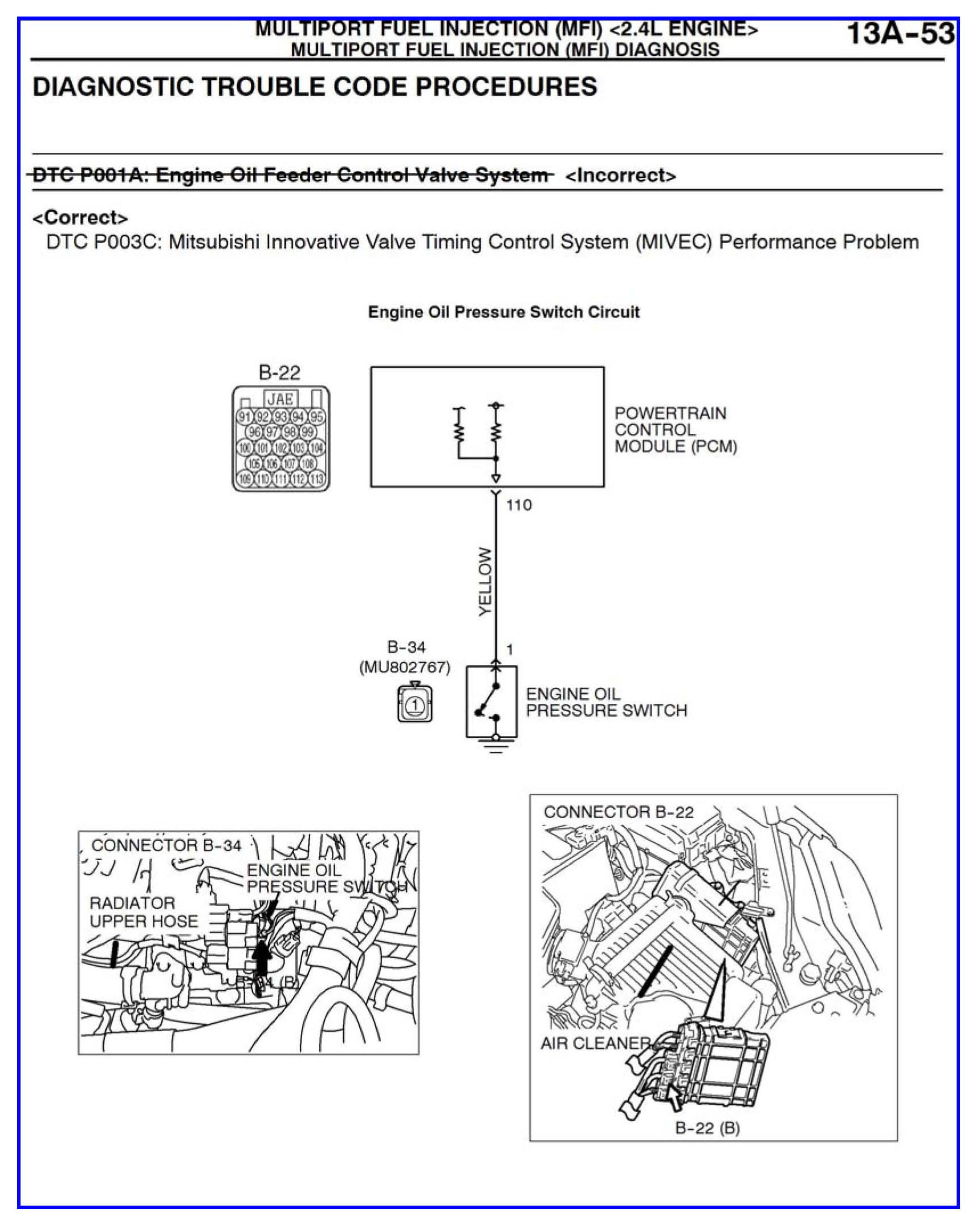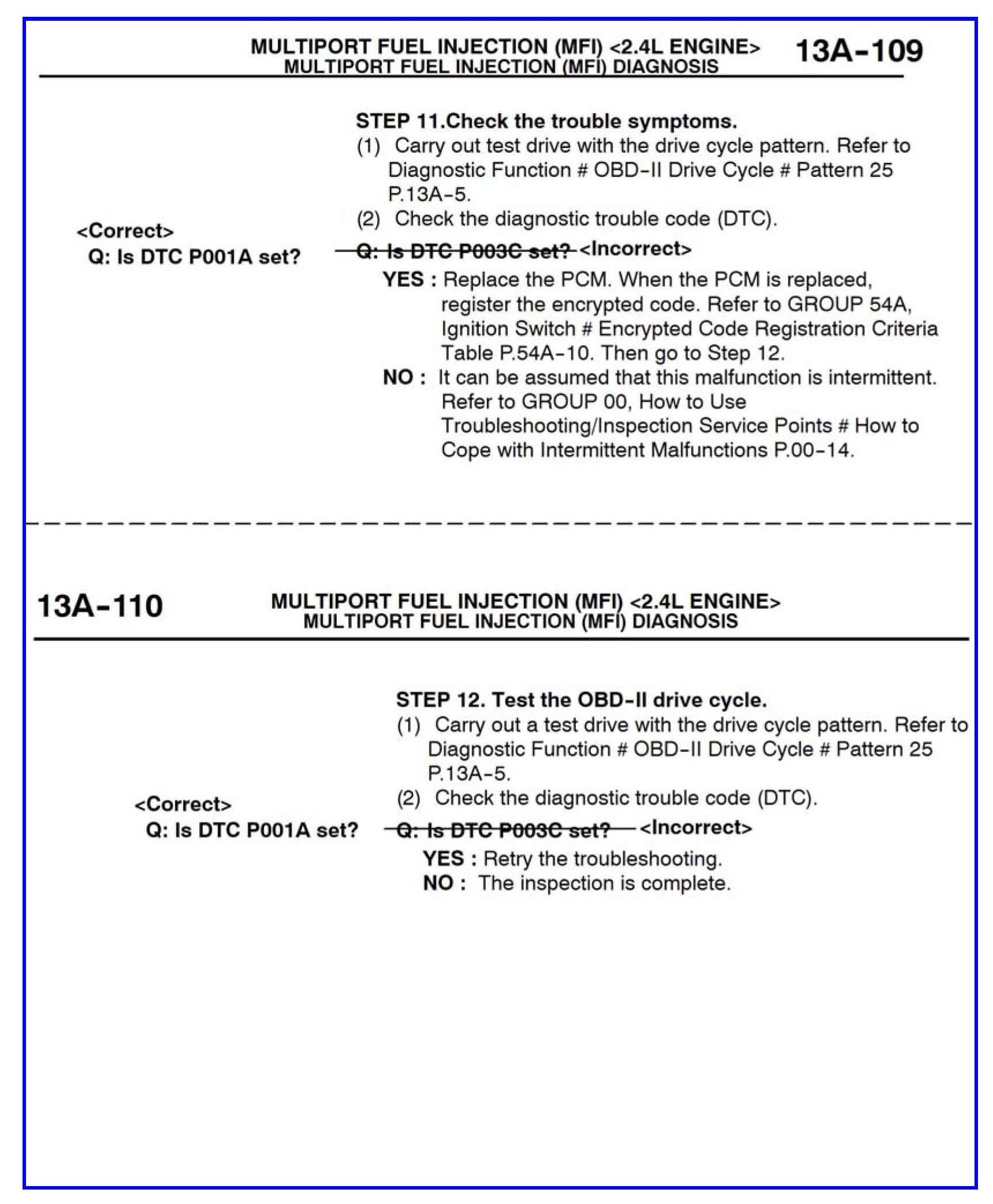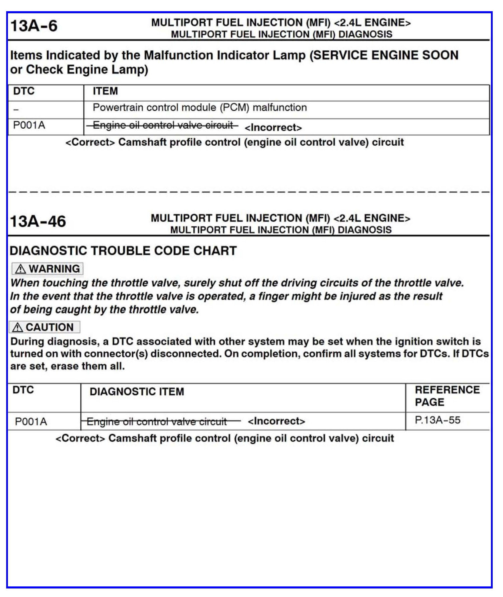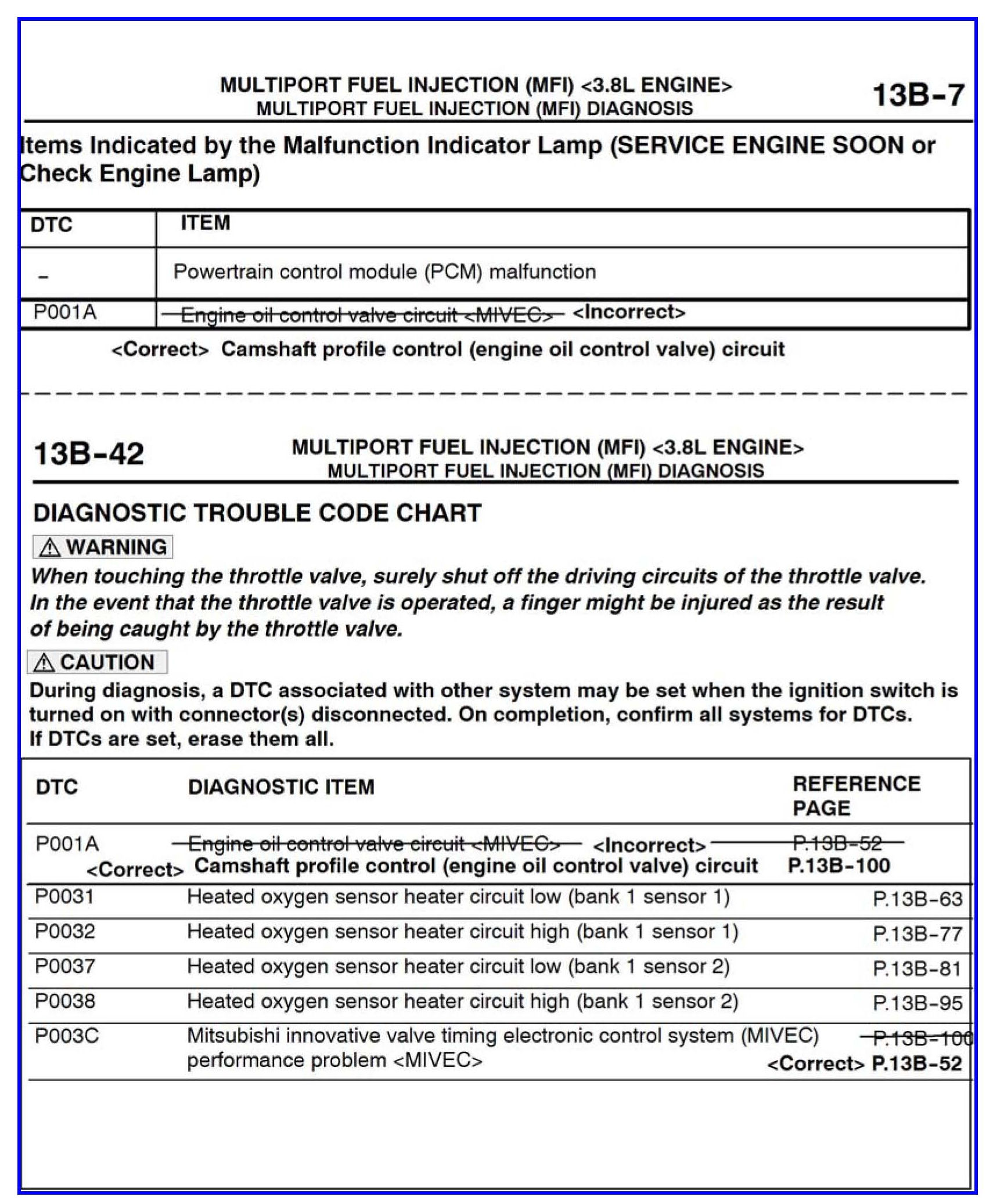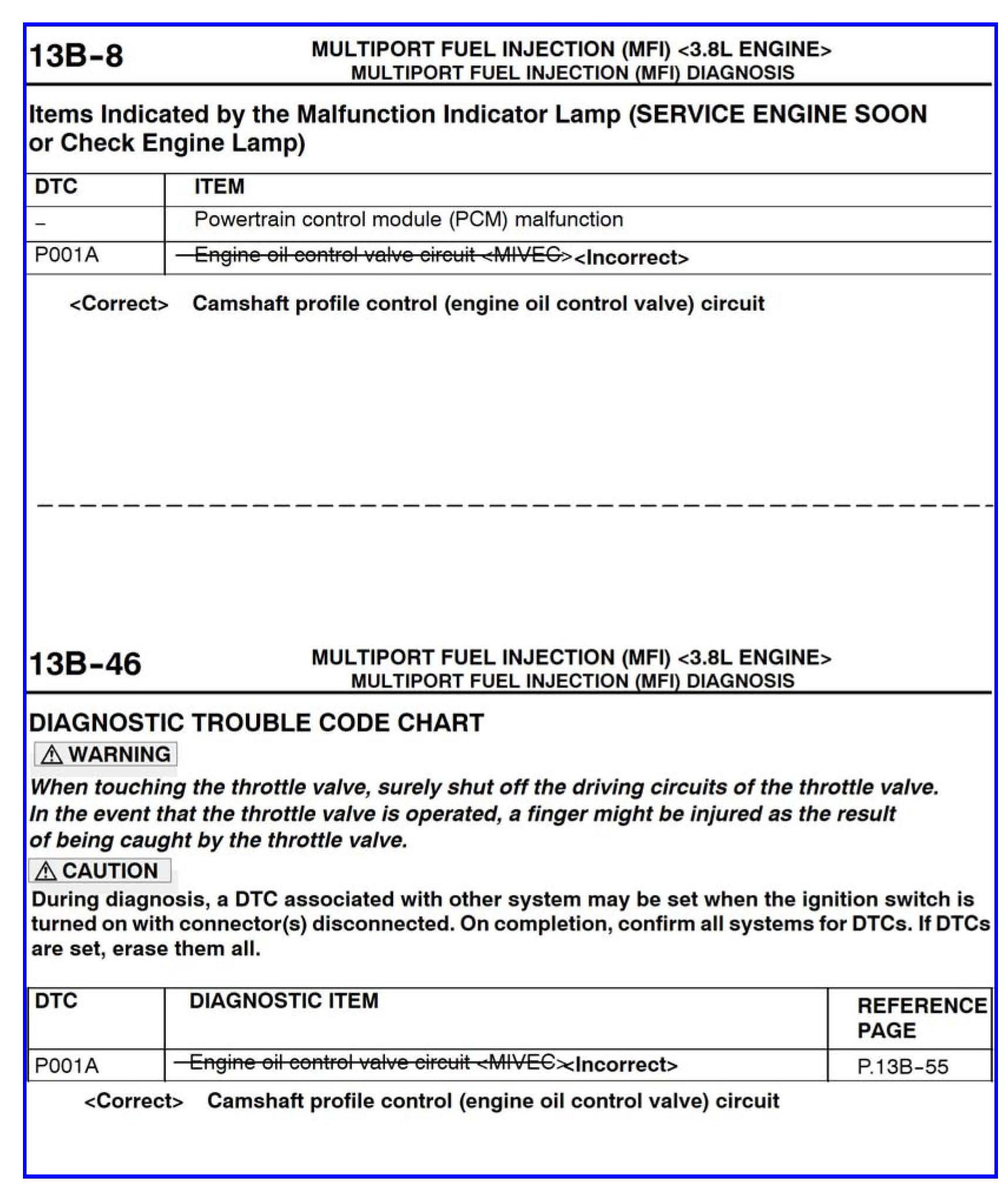 Some information for DTCs P001A and POO3C is incorrect in the affected service manuals. This bulletin contains corrected service manual pages for these diagnostic trouble codes.