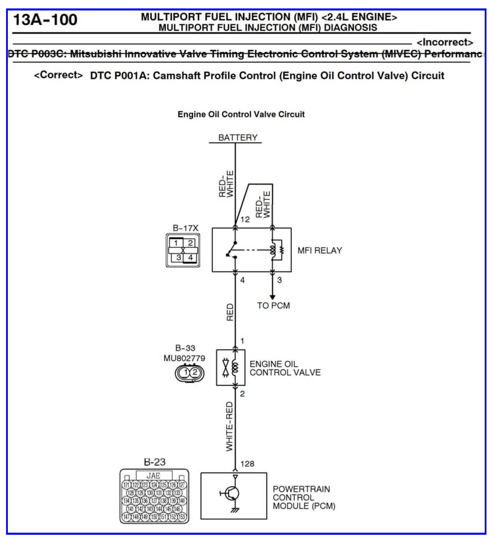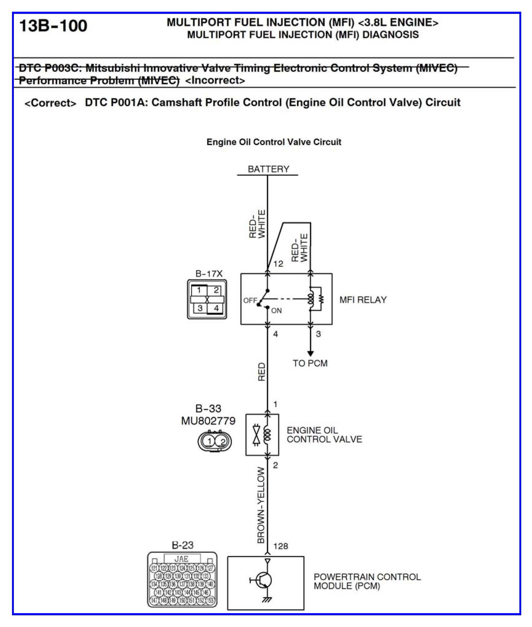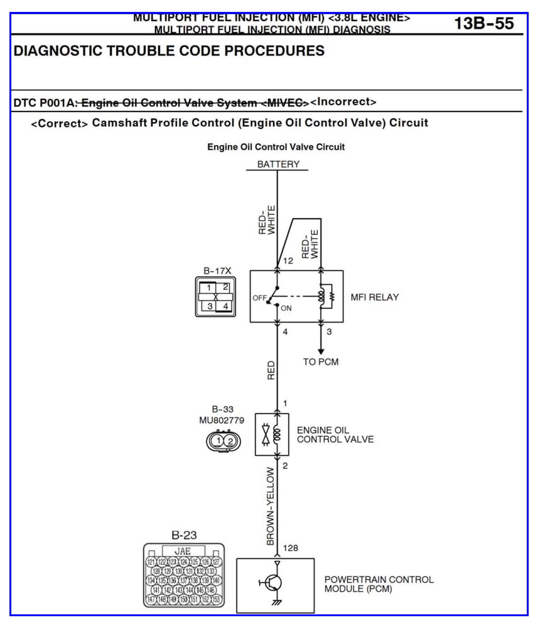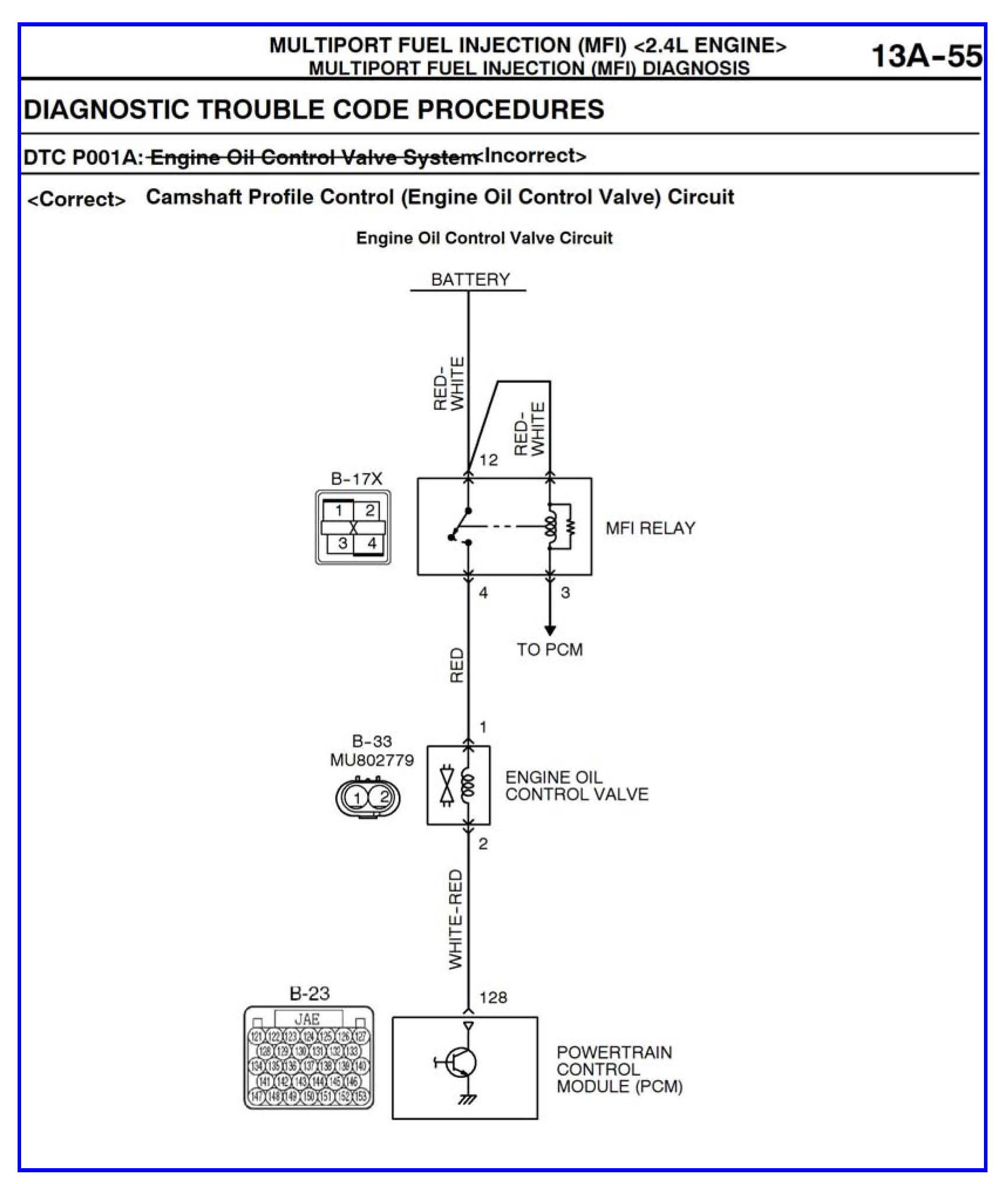 DTC P001A - Camshaft profile control (engine oil control valve) circuit