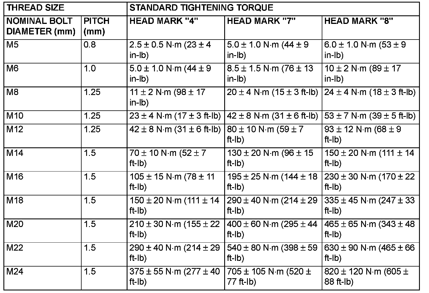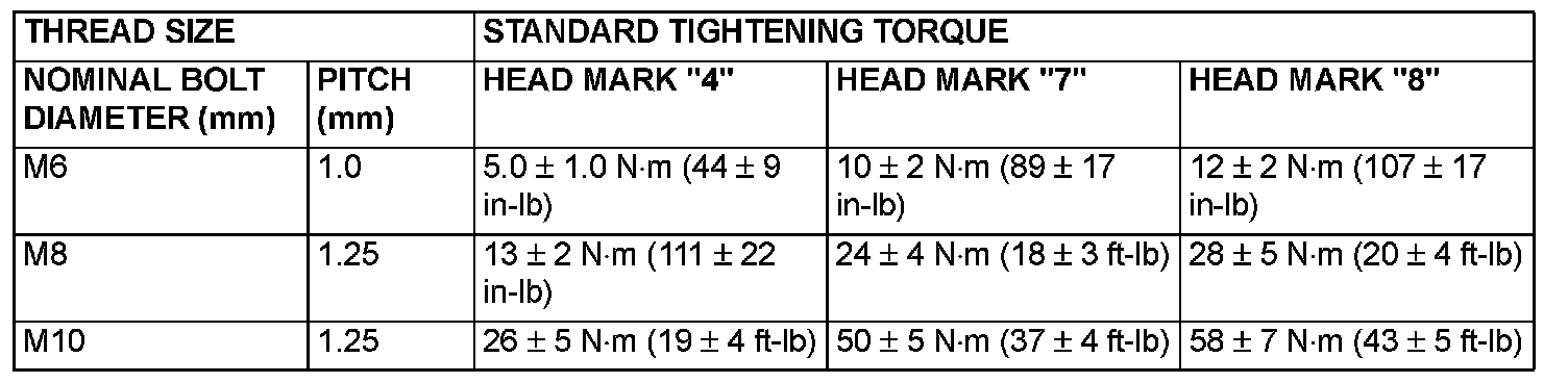 TIGHTENING TORQUEEach torque value in the table is a standard value for tightening under the following conditions.