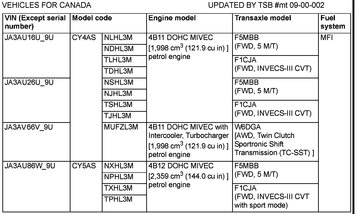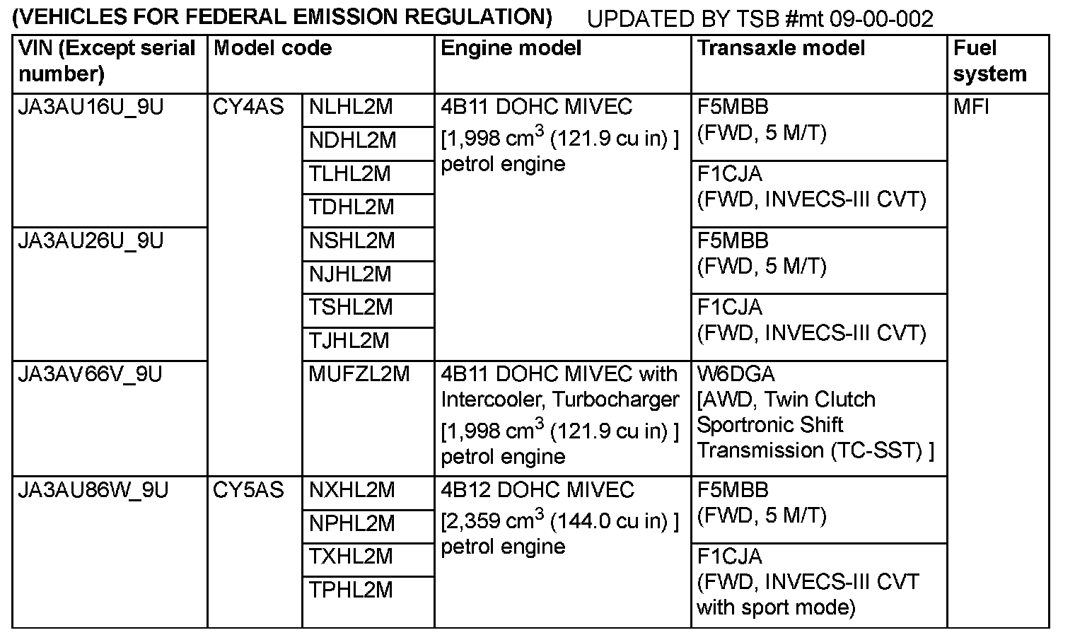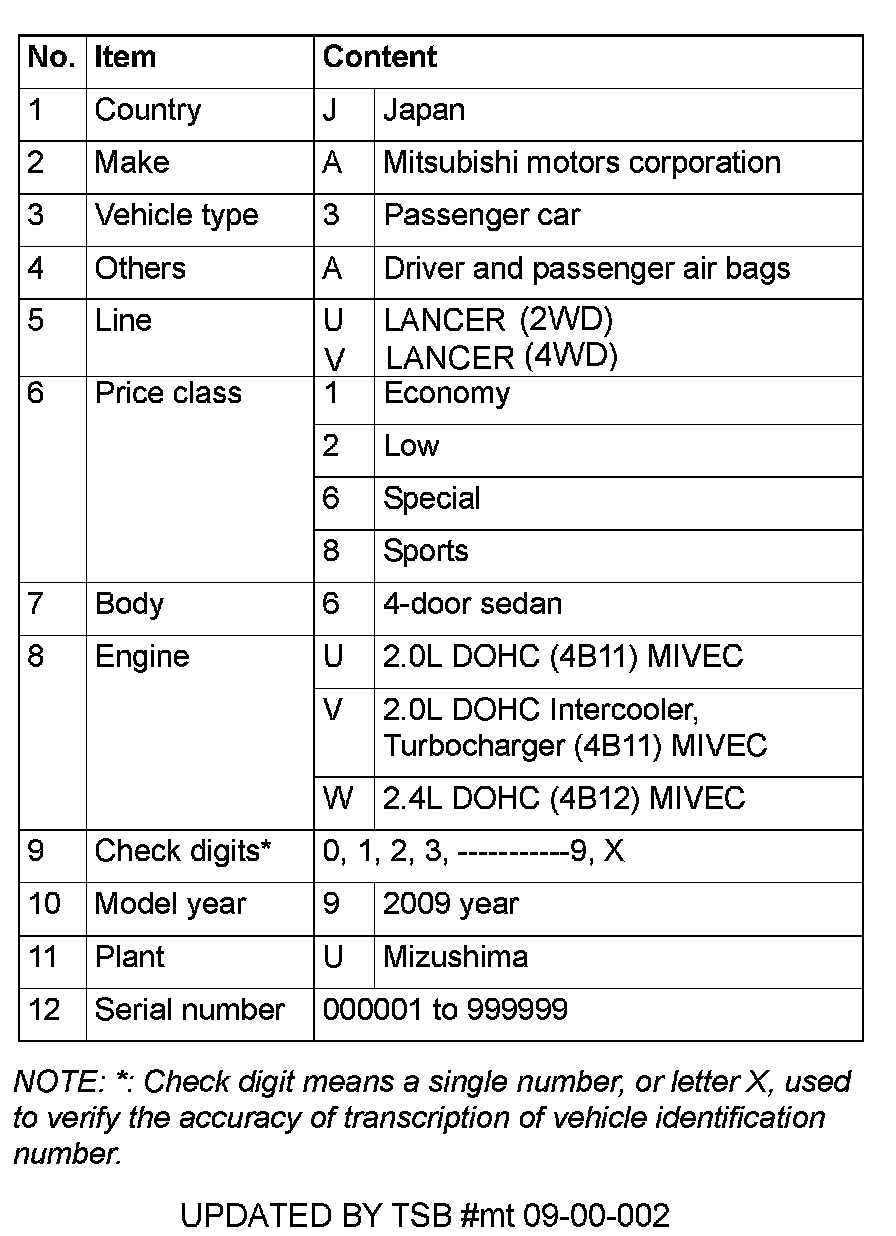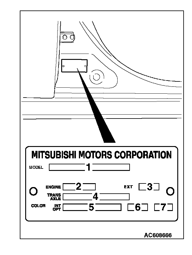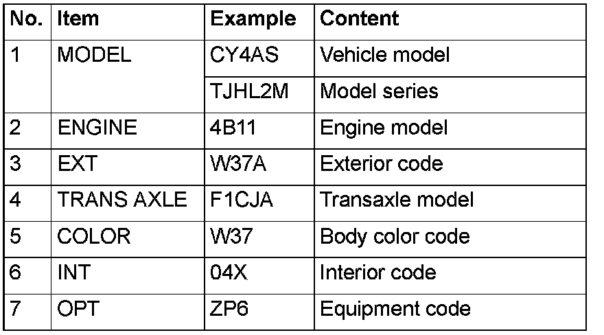 In order to protect against theft, a Vehicle Identification Number (VIN) is attached as a plate or label to the following major parts of the engine and transaxle, as well as main outer panels: