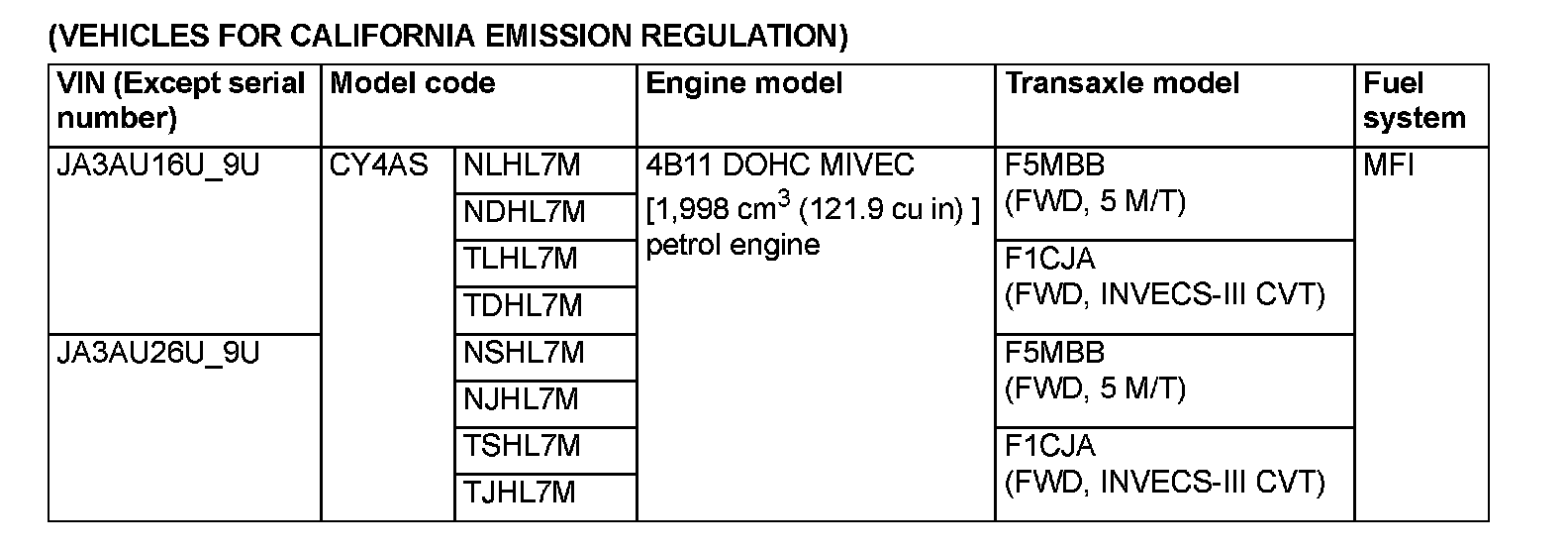 VEHICLES FOR CALIFORNIA EMISSION REGULATION: