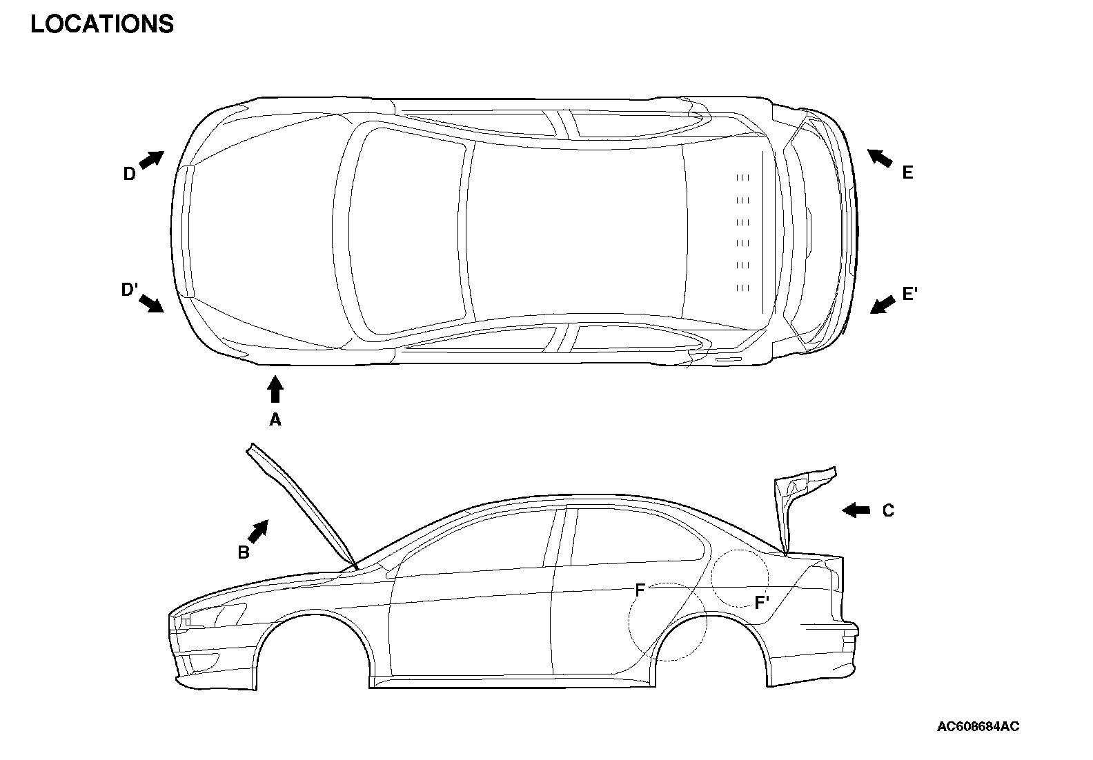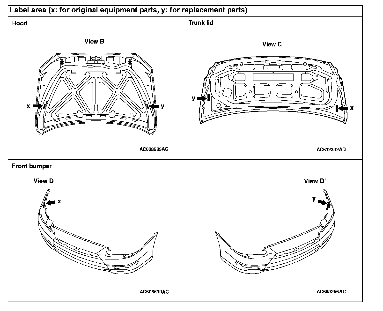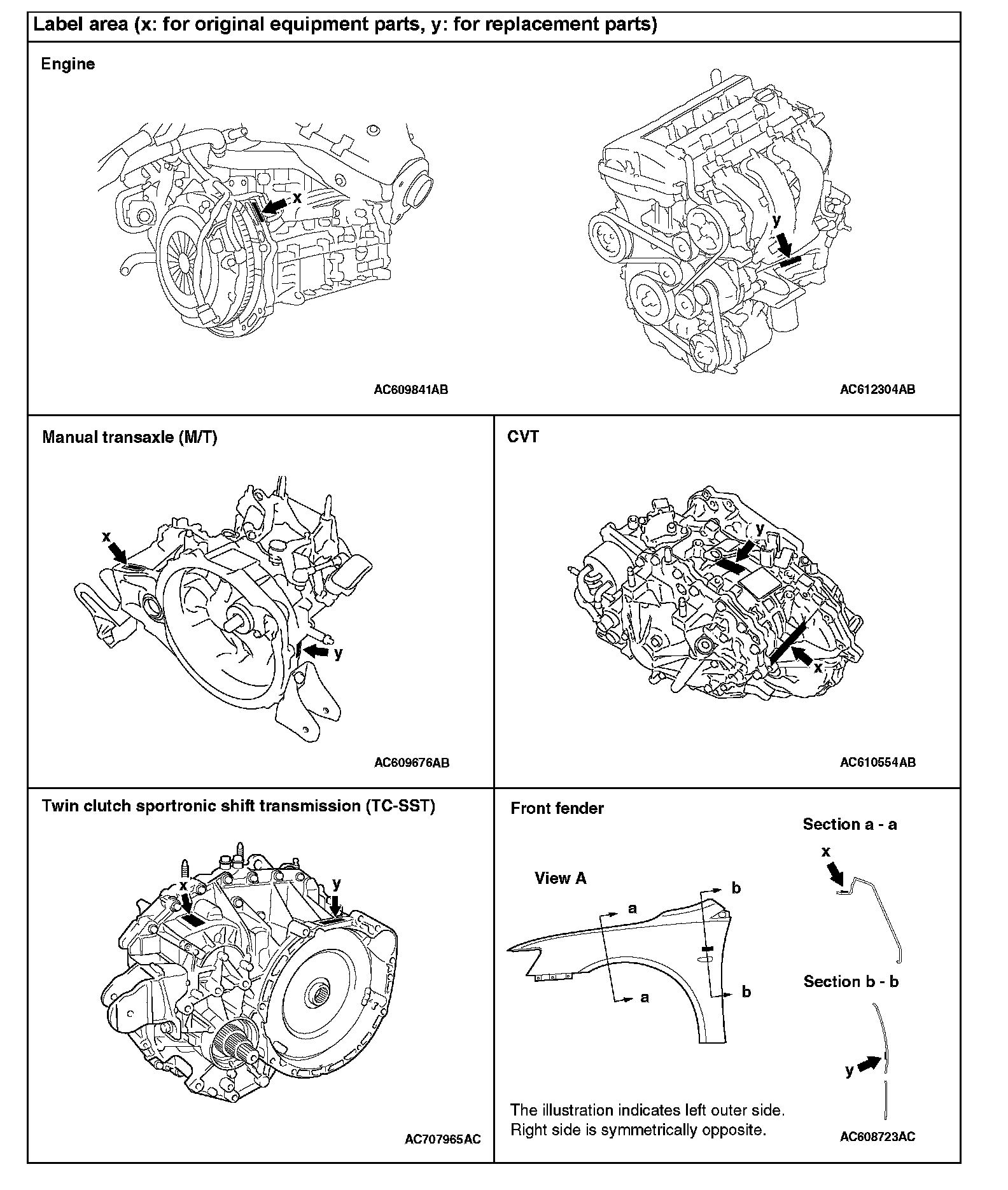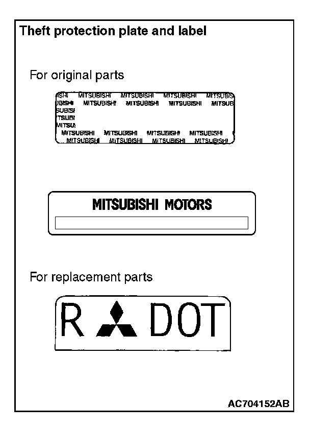 When replacing a part that has the theft protection plate, label or stamp on it, be sure that the part has either A or B shown in the figure. It is illegal if both A and B are attached, or neither A nor B is attached.