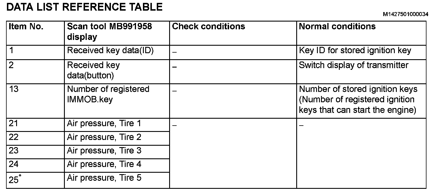 Data List Reference Table (Part 1):