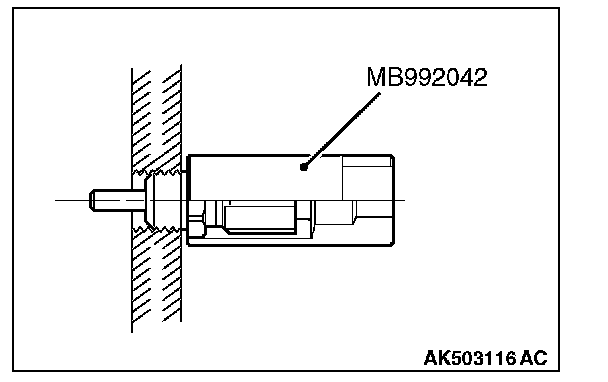 1. Drain engine coolant, then remove the engine coolant temperature sensor using the special tool MB992042 (engine coolant temperature sensor wrench).