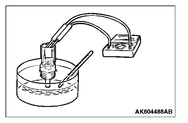2. With the temperature sensing portion of engine coolant temperature sensor immersed in hot water, check the resistance.