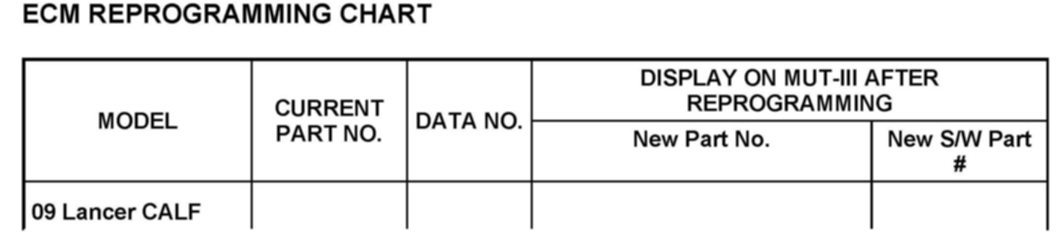 If more than one row is displayed in the table, refer to the ECM Reprogramming Chart to select the proper Data No. for this procedure and select the appropriate row.