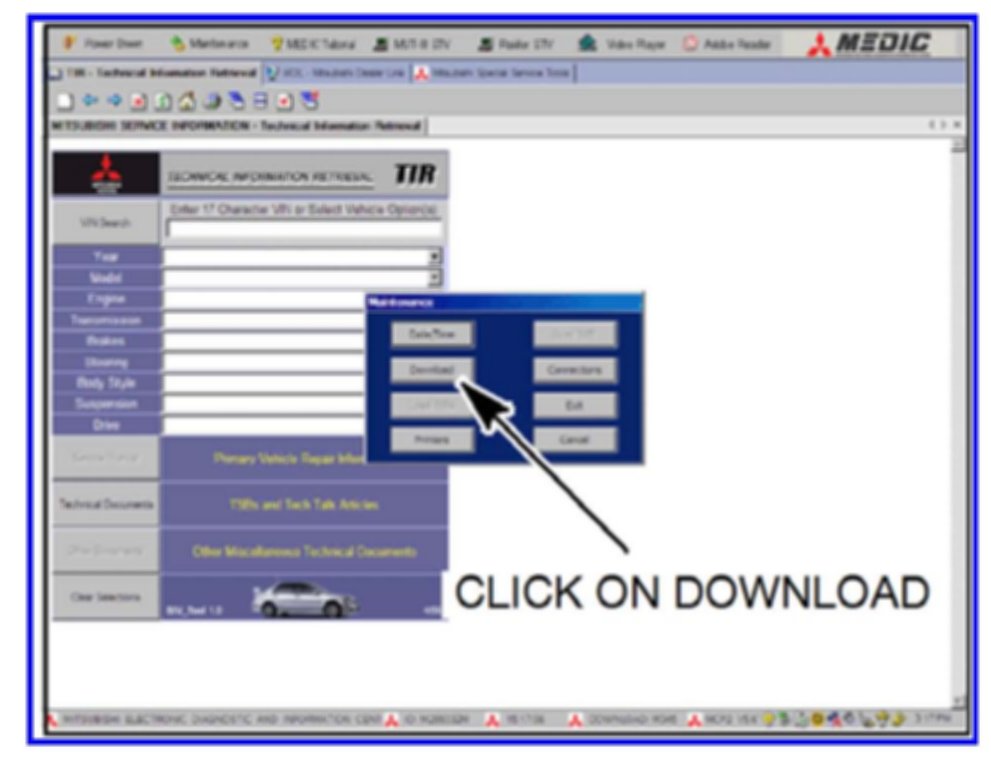 4. Click on "Download". After the download completes, click on "Cancel" to exit the "Maintenance" window. GO TO THE REPROGRAMMING PROCEDURE BELOW.
