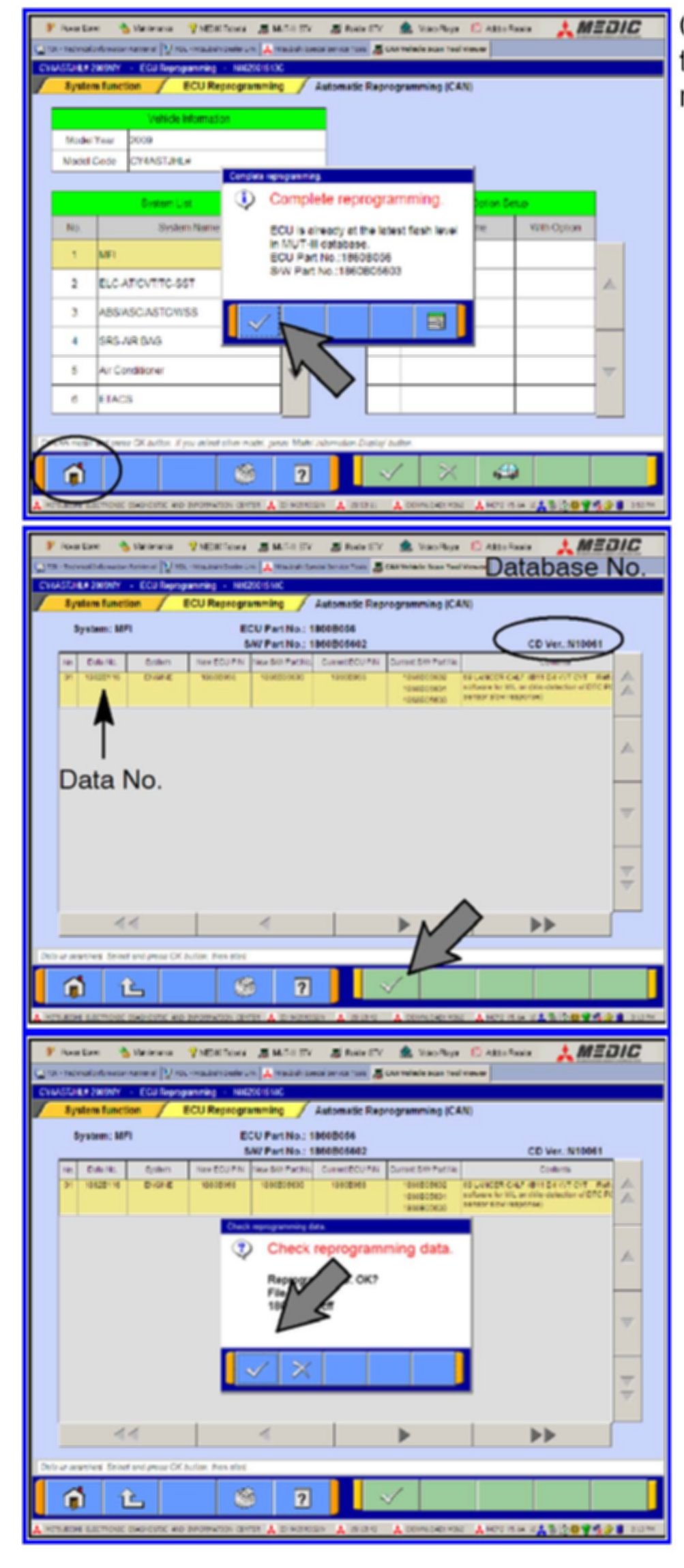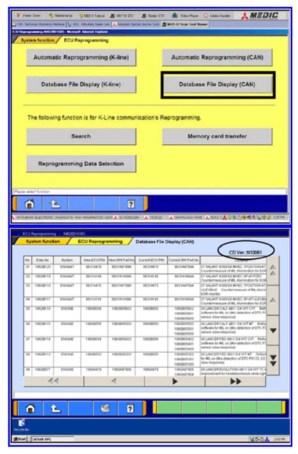 2. If the database version is less than N10061, you must transfer the new reprogramming data from the Reflash Update CD 06/10 to the MUT-III hard drive as follows: