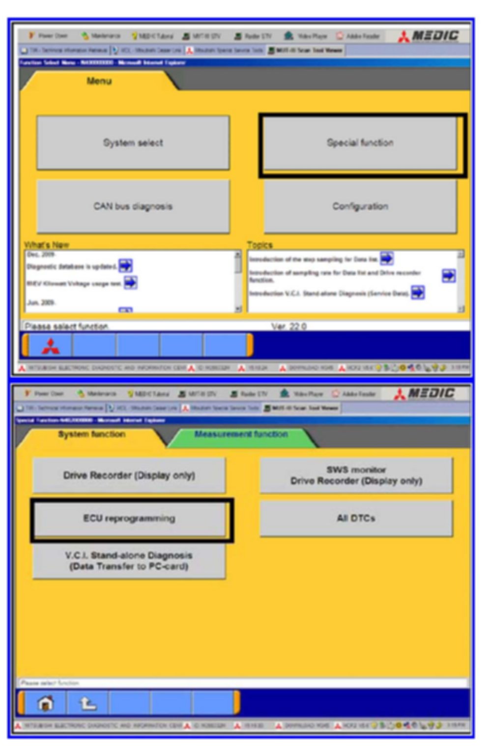 a. From the MUT-III Main Page, select "Special Function", then select "ECU Reprogramming."