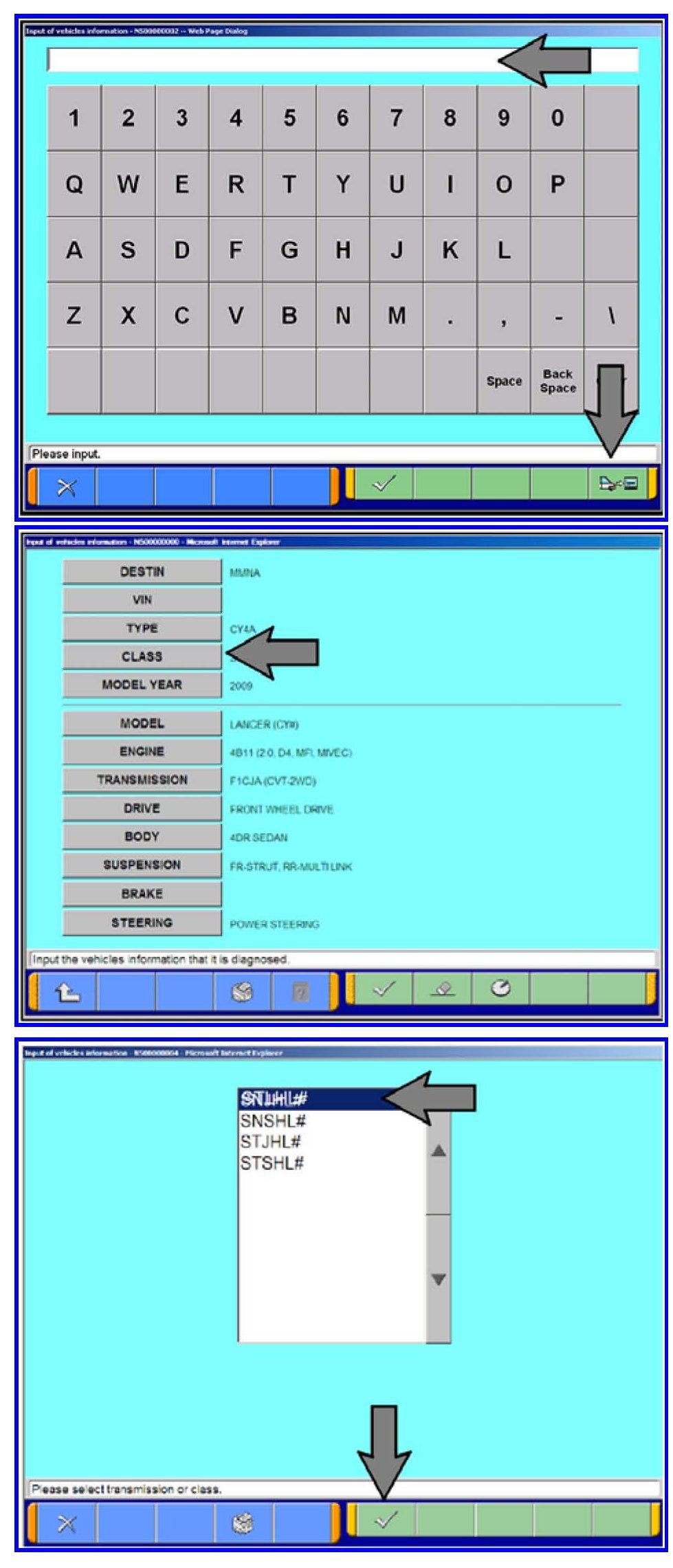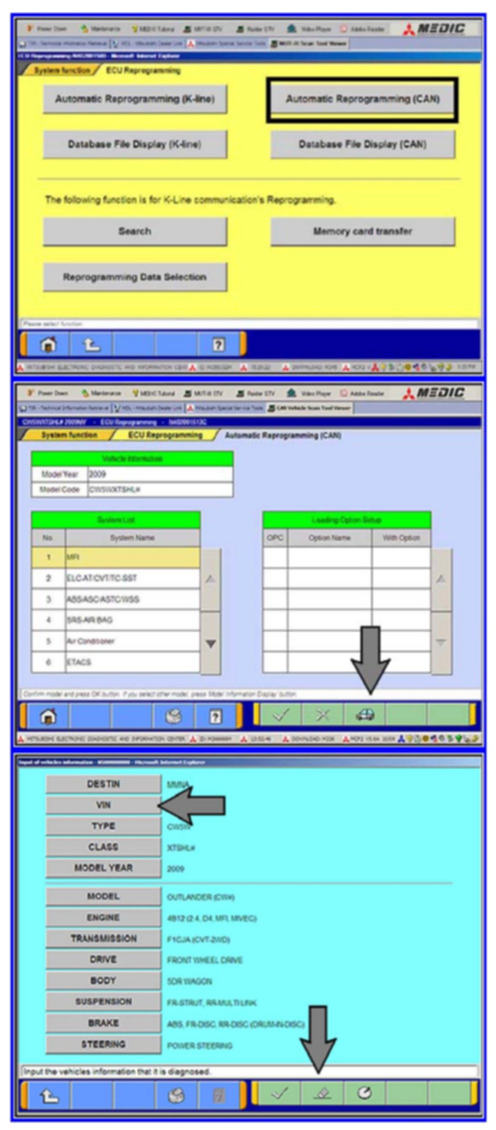 h. Click on the icon in the lower RH corner of the screen to have the MUT-III automatically read the VIN. If a message appears saying that the VIN cannot be input automatically, manually type the 17 digit VIN into the VIN field.