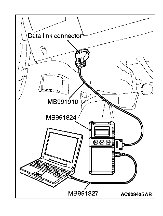 1. After the ignition switch is in "LOCK" (OFF) position, connect scan tool MB991958 to the diagnosis connector.