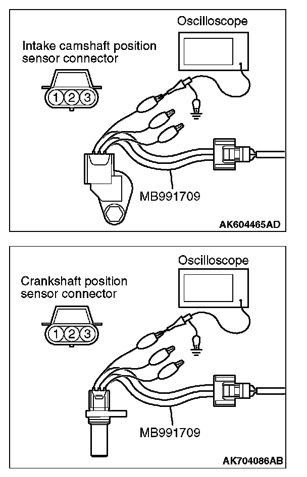 INSPECTION PROCEDURE USING AN OSCILLOSCOPEINTAKE CAMSHAFT POSITION SENSOR AND CRANKSHAFT POSITION SENSOR