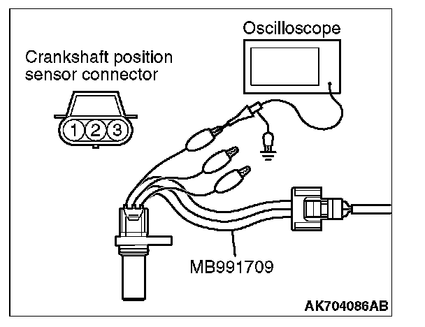 3. Disconnect the crankshaft position sensor connector, and connect the test harness special tool (MB991709) between the separated connector.