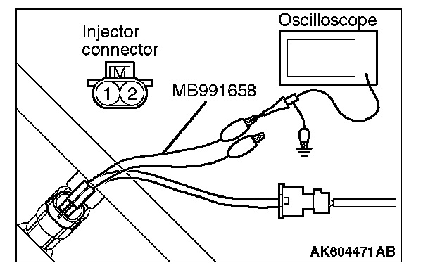 1. Disconnect the injector connector, and connect the test harness special tool (MB991658) between the separated connector. (All terminals should be connected.)