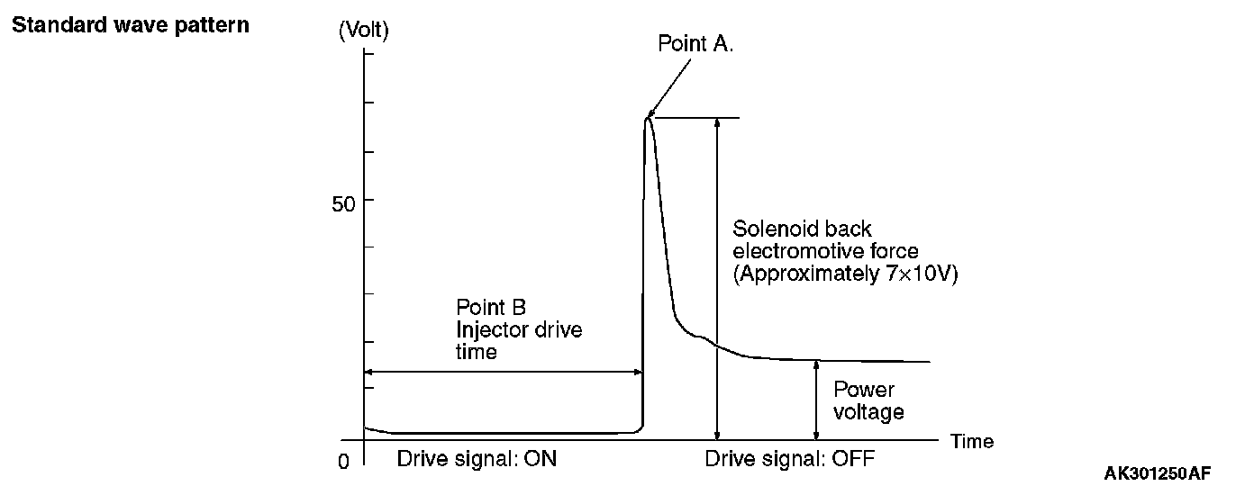 Point A: Presence or absence of induced electromotive force from the motor turning. (Refer to abnormal wave pattern.)