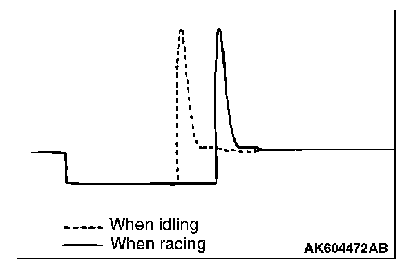 - Verify that, toward the engine speed of 2,500 r/min, time difference T from when the crankshaft position sensor output wave falls to when the exhaust camshaft position sensor output wave falls becomes less.