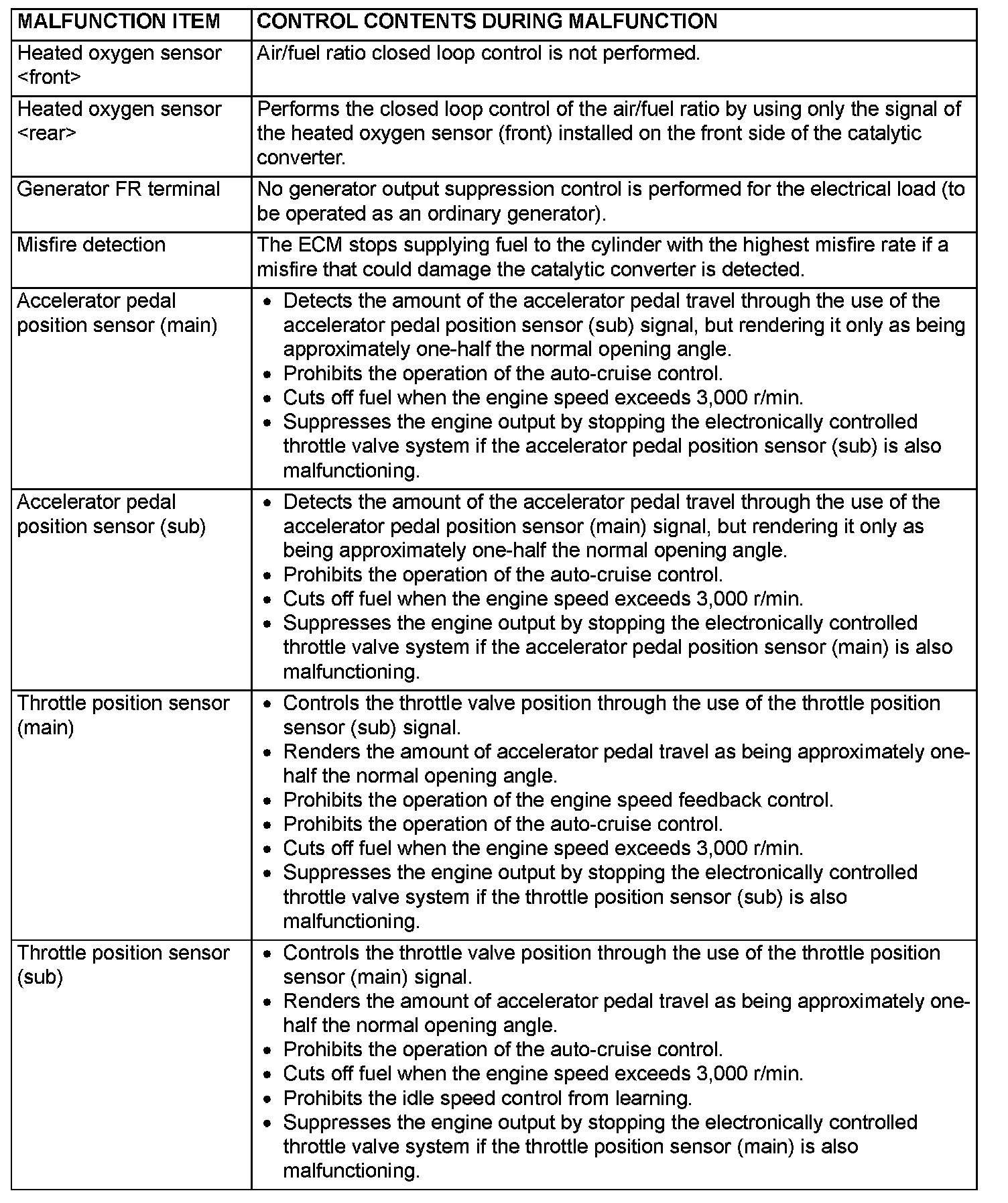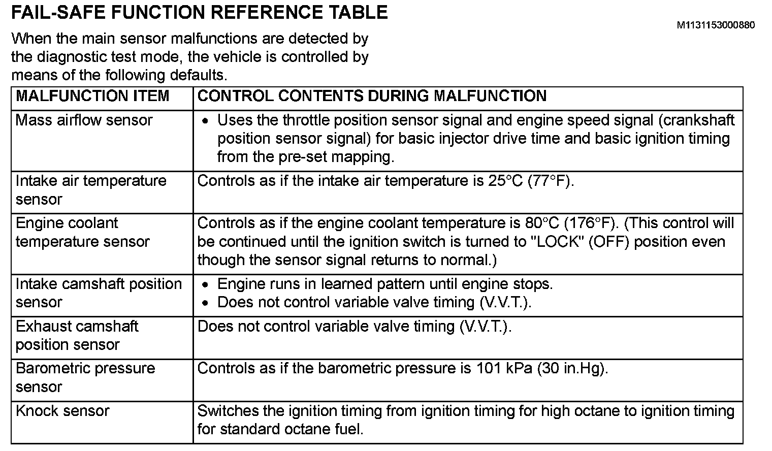 Fail-Safe Function Reference Table (Part 2):
