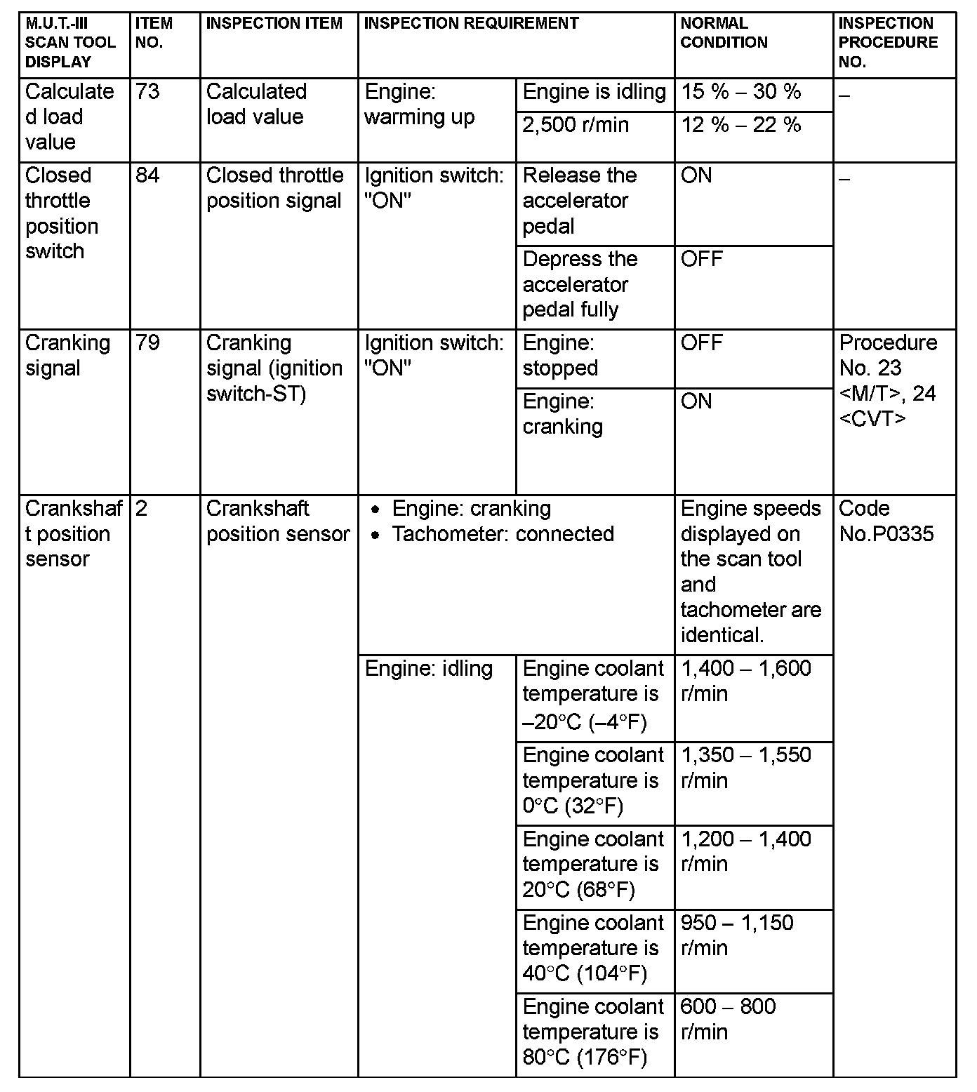 *5 : Data items are displayed on M.U.T.-III display, but the in-line 4 engine is not applicable and its data is displayed as "N/A".