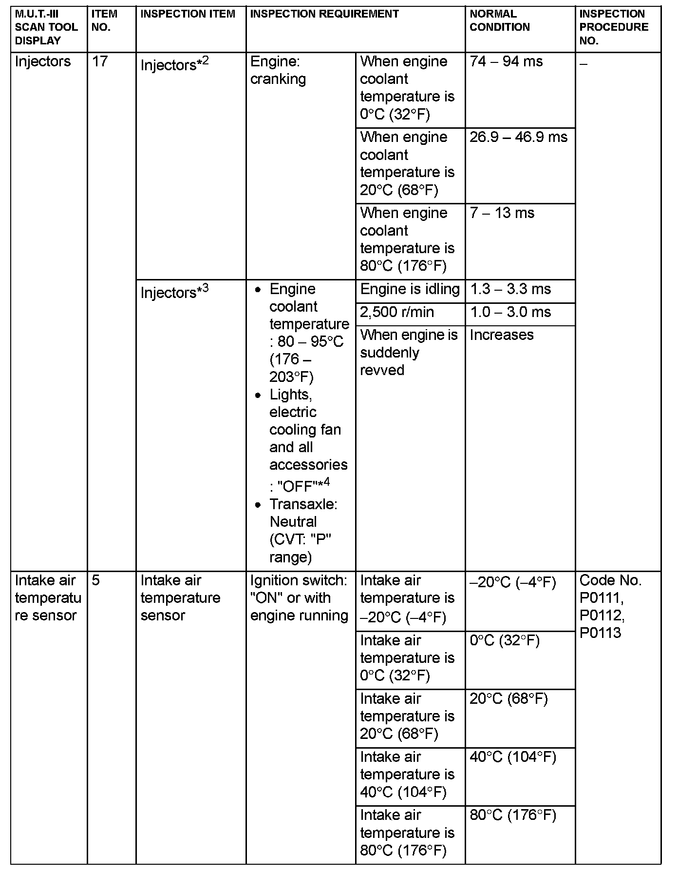 *3 : In a new vehicle [driven approximately 500 km (311 mile) or less], the injector drive time is sometimes 10% longer than the standard time.