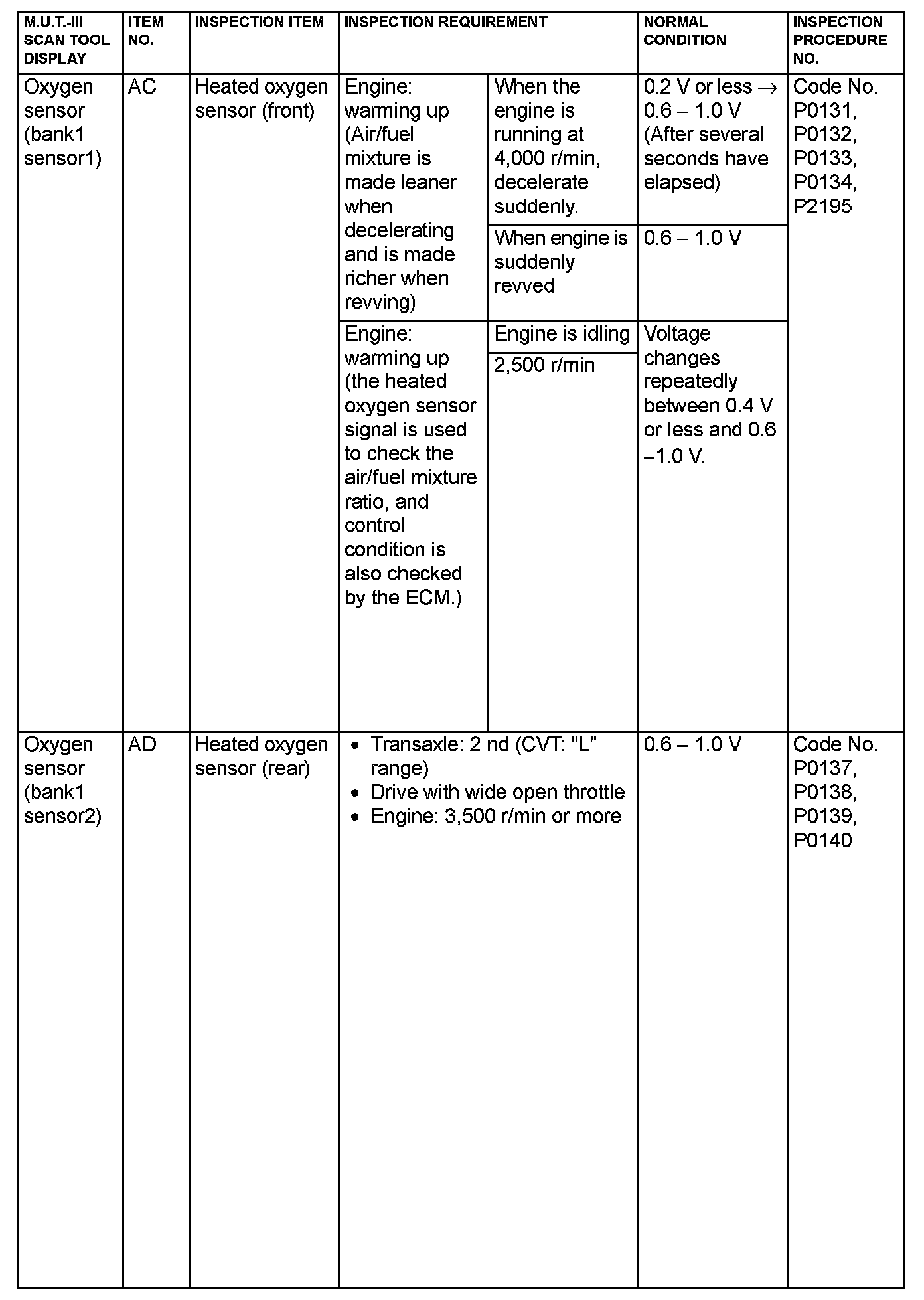 *1 : In a new vehicle [driven approximately 500 km (311 mile) or less], the mass airflow sensor output value is sometimes 10% higher than the standard value.