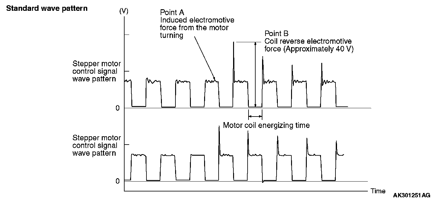 Point A: Presence or absence of induced electromotive force from the motor turning. (Refer to abnormal wave pattern.)