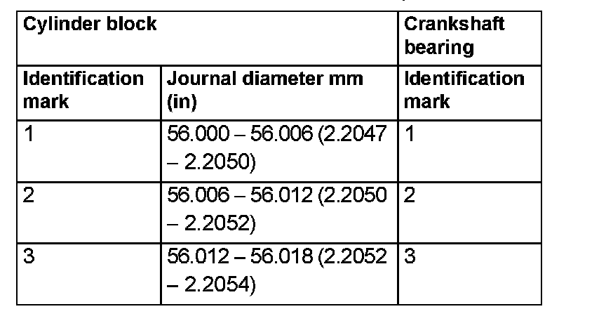 Crankshaft journal oil clearance mm (in) - Limit 0.1 (0.004)