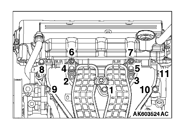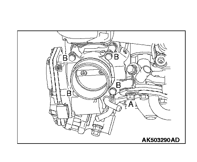 Throttle body mounting bolts at illustrated position B 9.5 ± 2.5 Nm 84 ± 22 in-lb