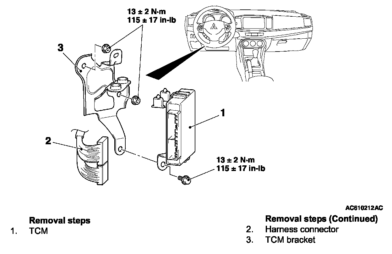 TRANSAXLE CONTROL MODULE (TCM)REMOVAL AND INSTALLATION