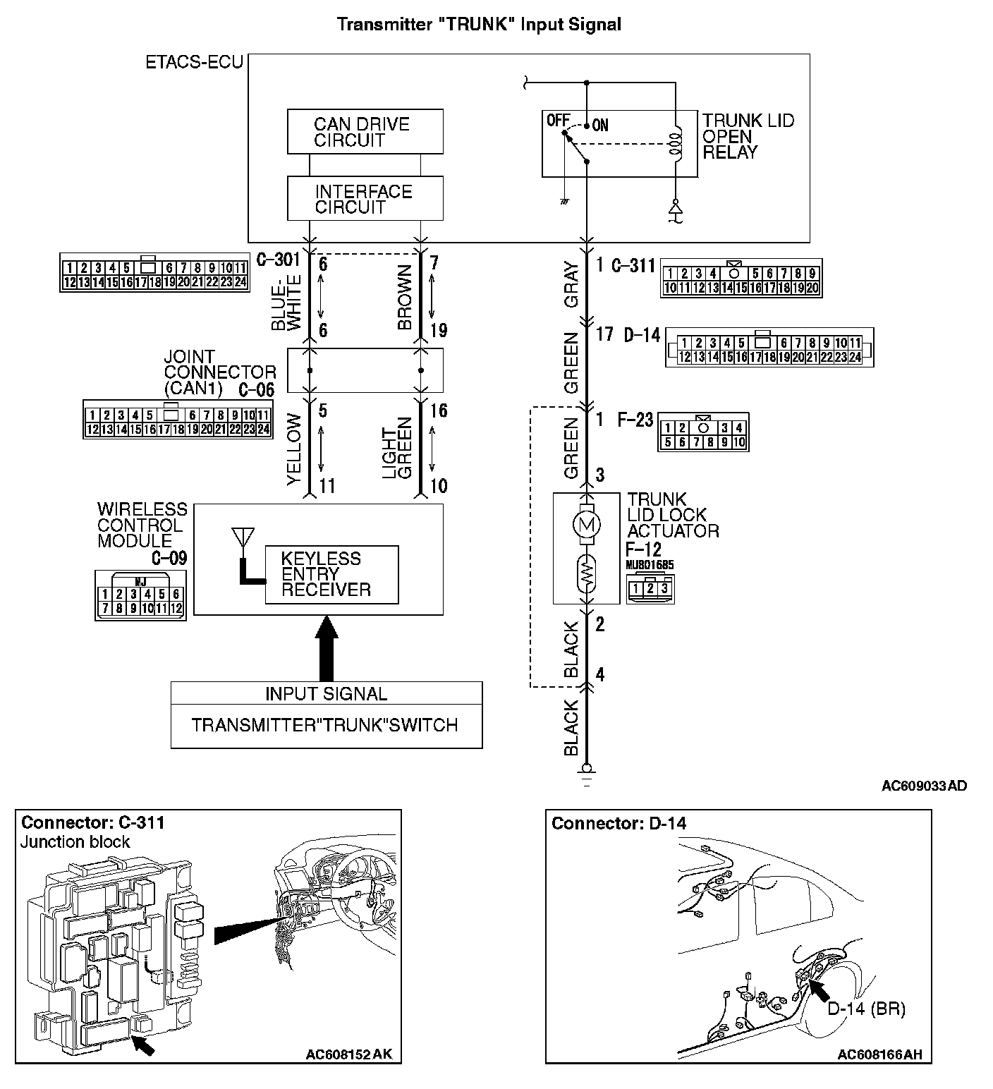Q: Is trunk lid lock actuator connector F-12 and ETACS-ECU connector C-311 in good condition?