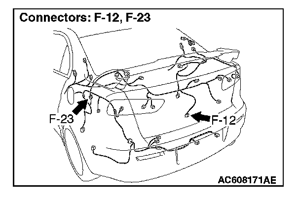 STEP 3. Check trunk lid lock actuator connector F-12 and ETACS-ECU connector C-311 for loose, corroded or damaged terminals, or terminals pushed back in the connector.