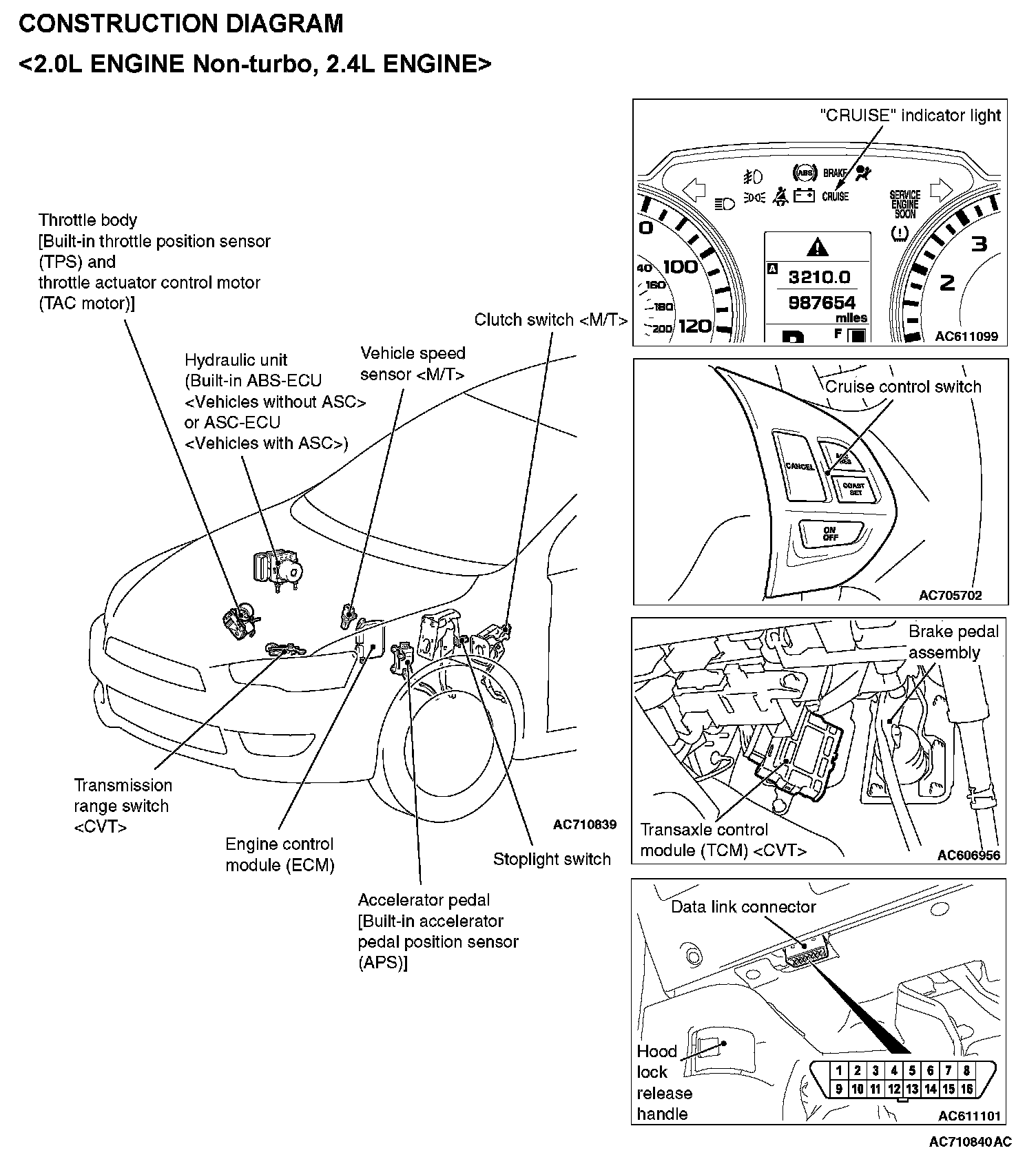 For this cruise control system, in conjunction with the electronic throttle valve control system, the engine control module (ECM) electronically controls the throttle valve.