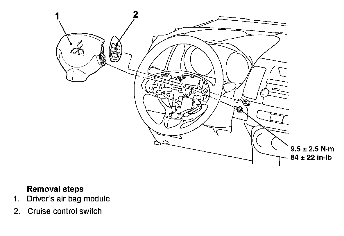 AUTO-CRUISE CONTROL SWITCH REMOVAL AND INSTALLATION [2.0L ENGINE NON-TURBO, 2.4L ENGINE]WARNING: Before removing the driver's air bag module assembly , always refer to Air Bag Systems Service Precautions, and Clockspring Assembly / Spiral Cable, Air Bag Service and Repair.