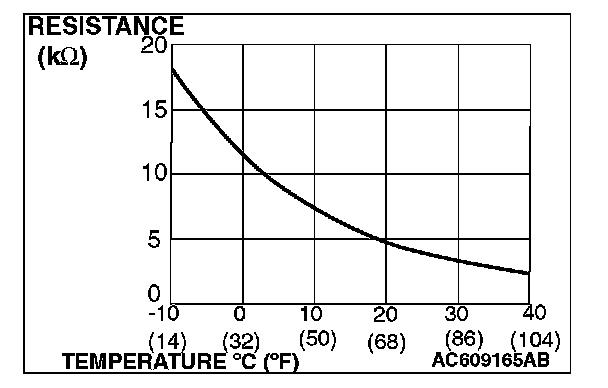 When the resistance between the sensor terminals is measured under two or more temperature conditions, the resistance should approximately satisfy the illustrated values.