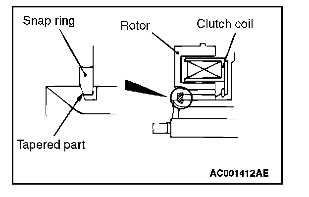 Using snap ring pliers, fit the snap ring so that the snap ring s tapered part is on the outside.