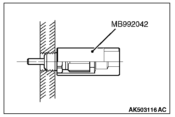 1. Drain engine coolant, then remove the engine coolant temperature sensor using the special tool MB992042 (engine coolant temperature sensor wrench).