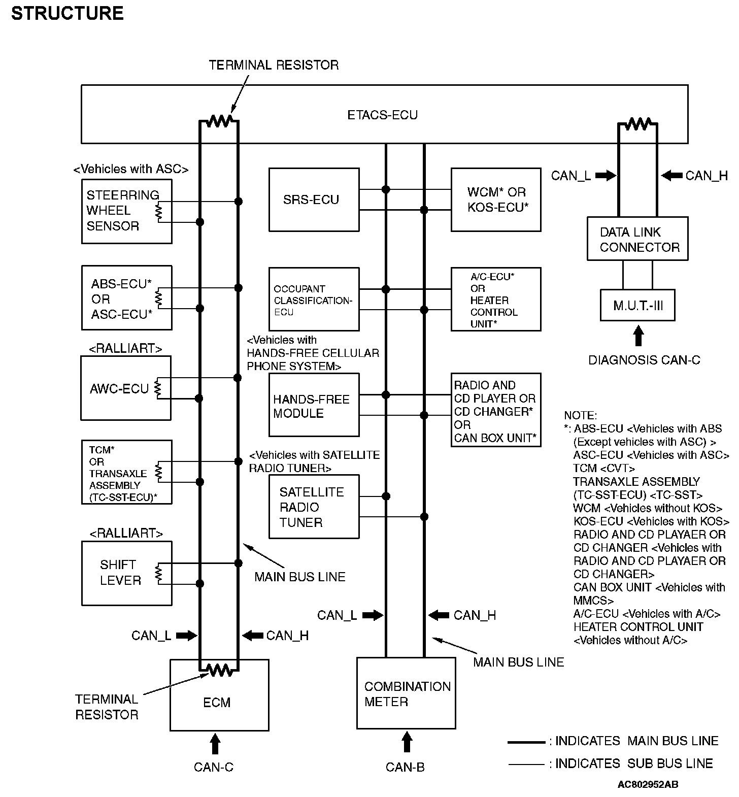 - Non-dominant ECU: ECU and sensor on CAN-C network, excluding ETACS-ECU and engine ECU