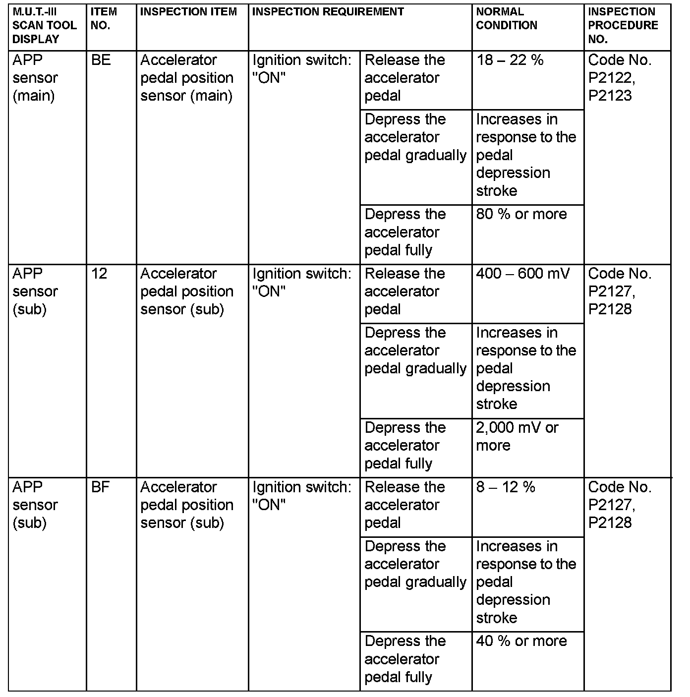 - 1*: In a new vehicle [driven approximately 500 km (311 mile) or less], the mass airflow sensor output value is sometimes 10% higher than the standard value.