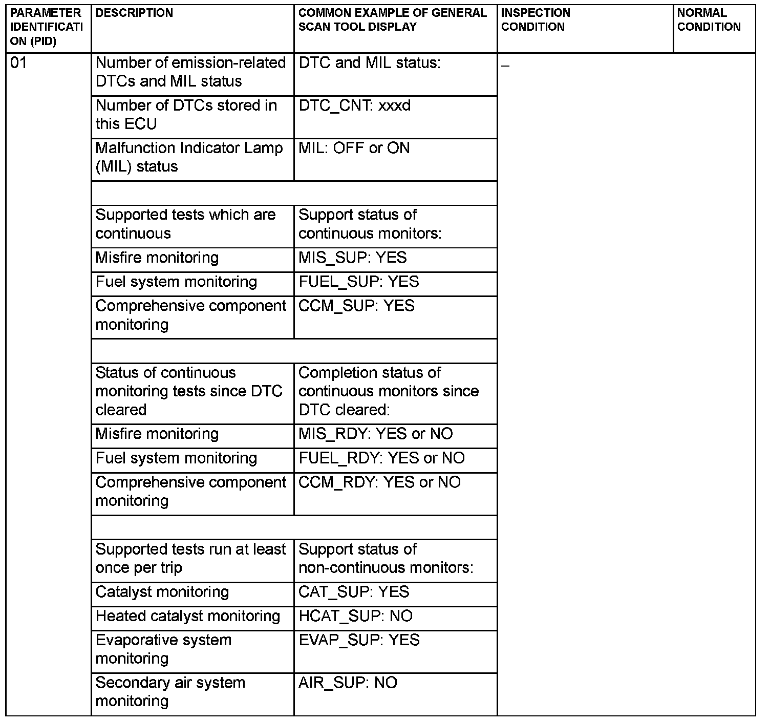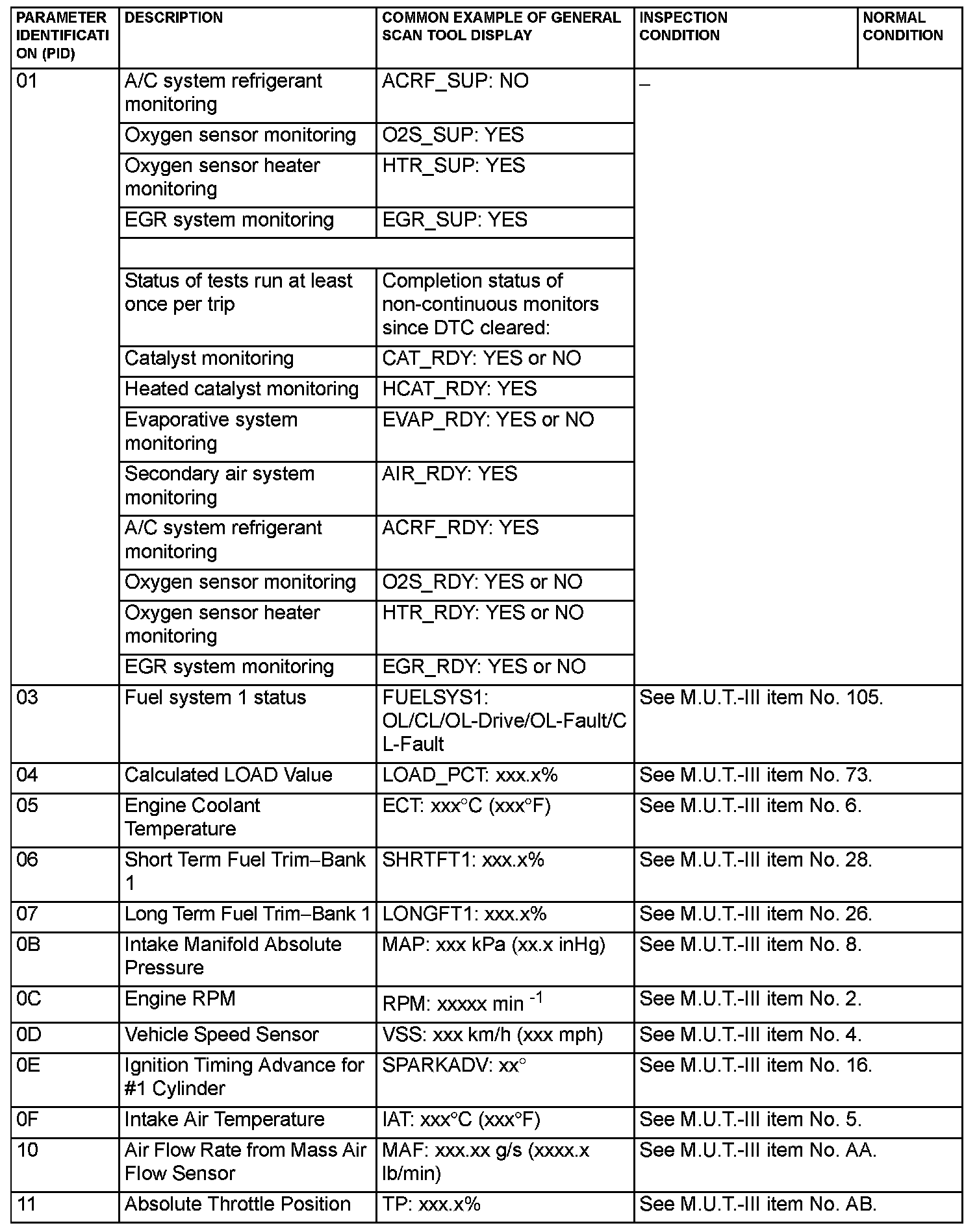 GENERAL SCAN TOOL (GST) MODE 01 REFERENCE TABLE