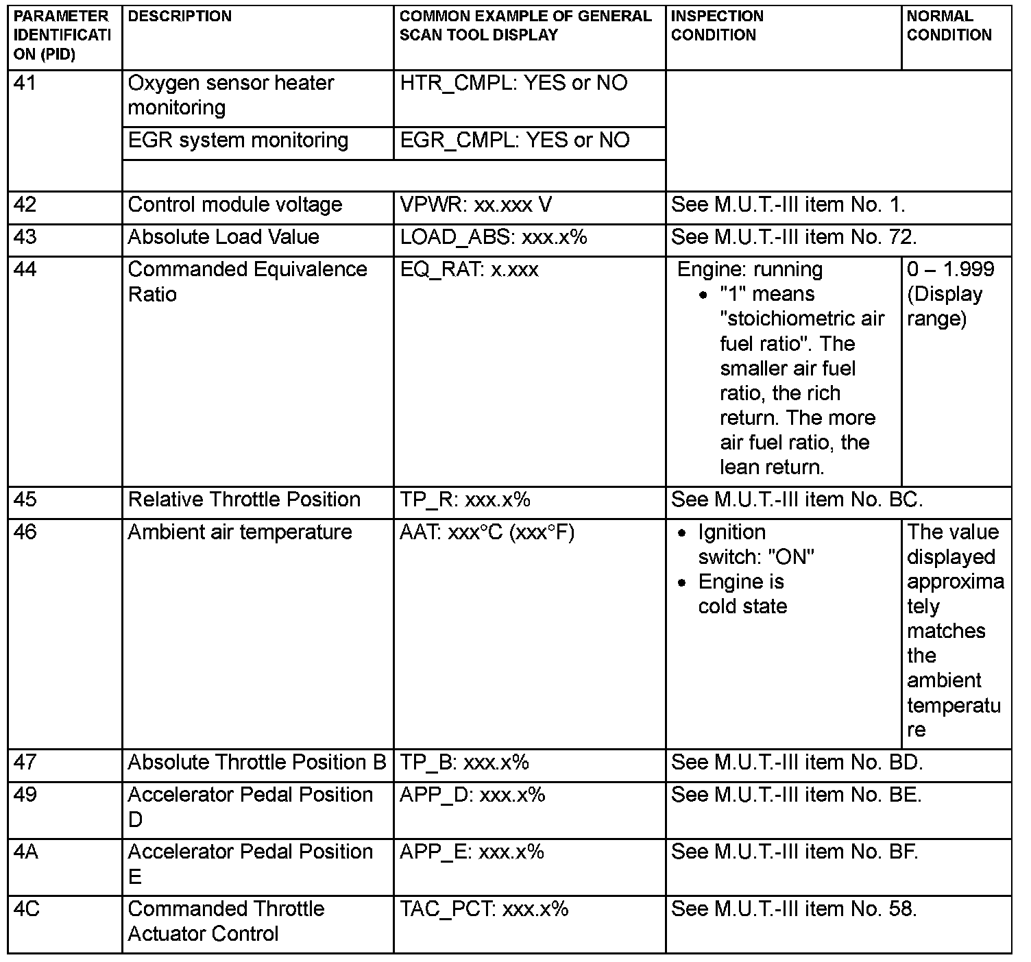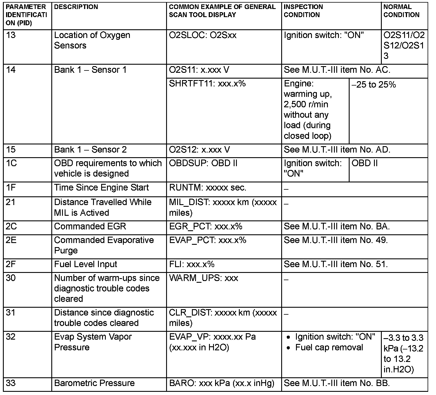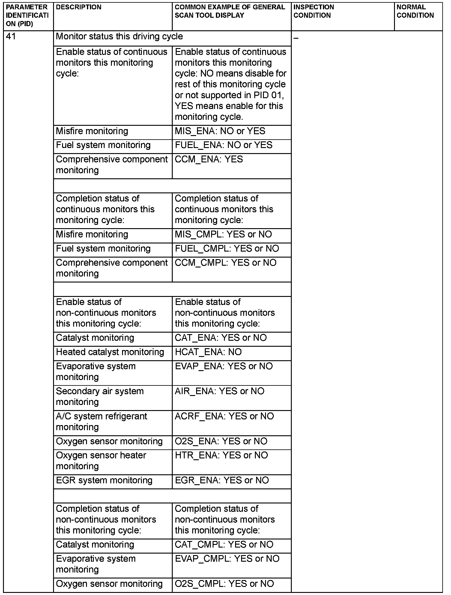 NOTE: GST MODE 01 can be accessed through the use of a general scan tool.